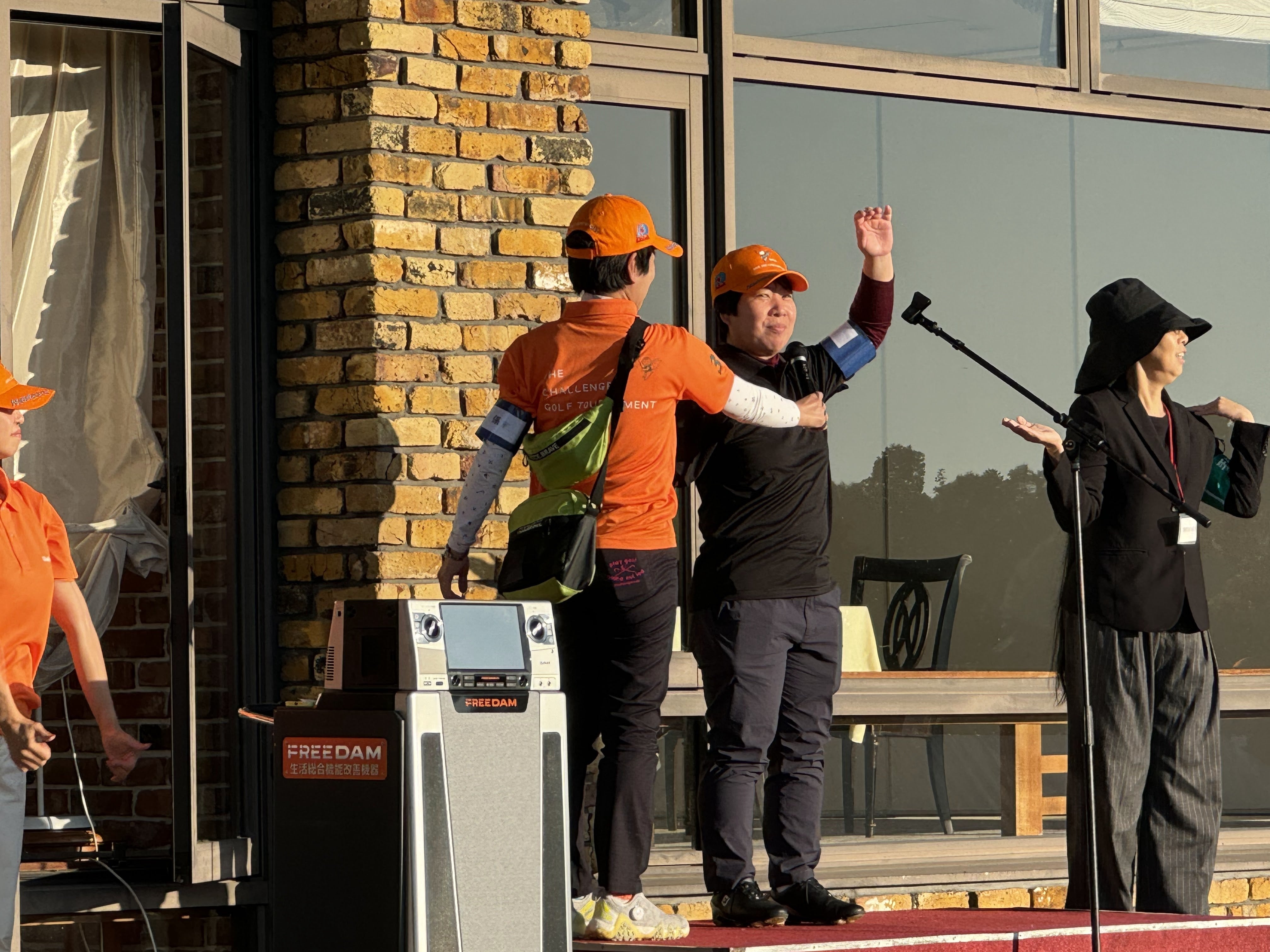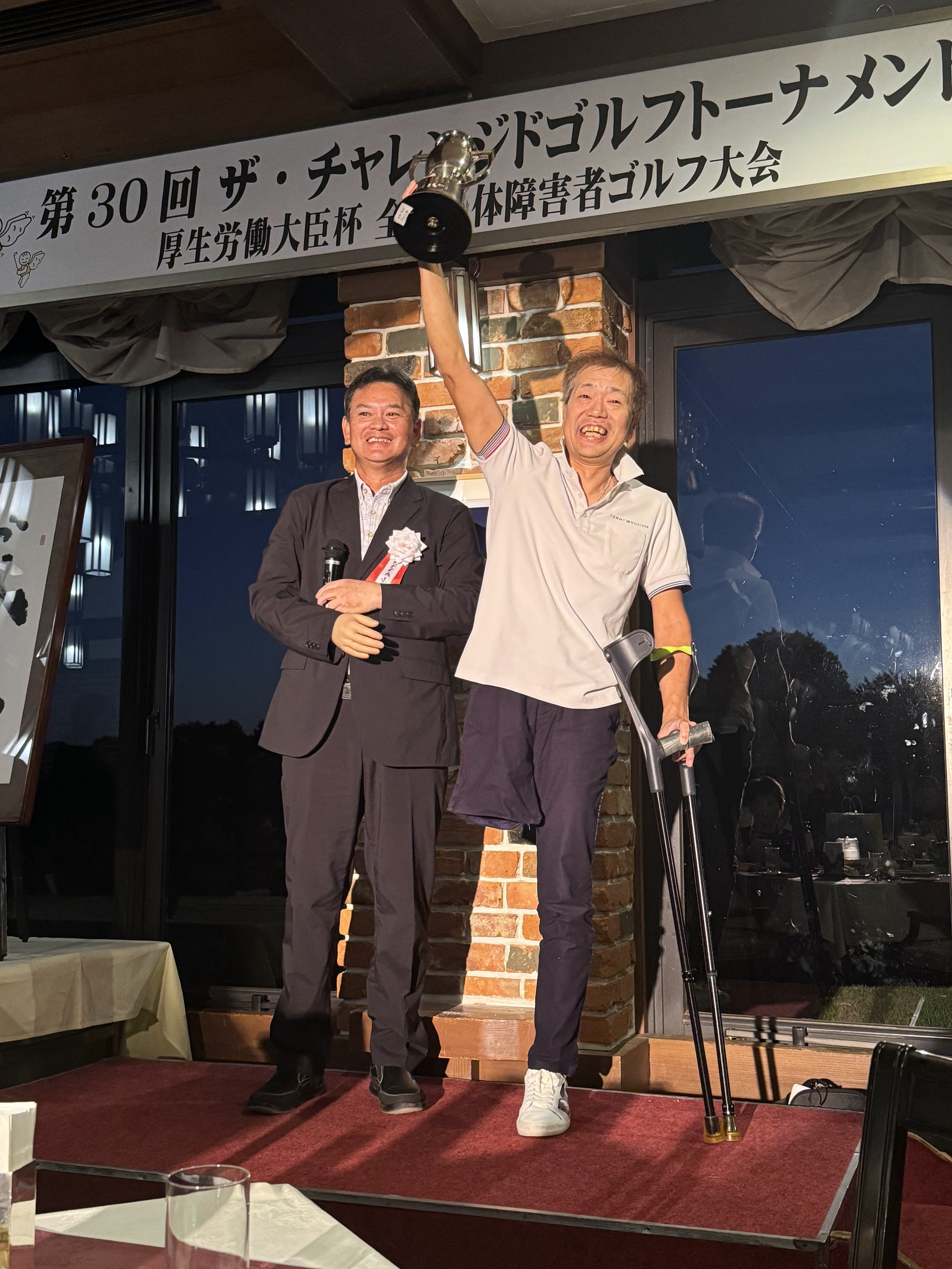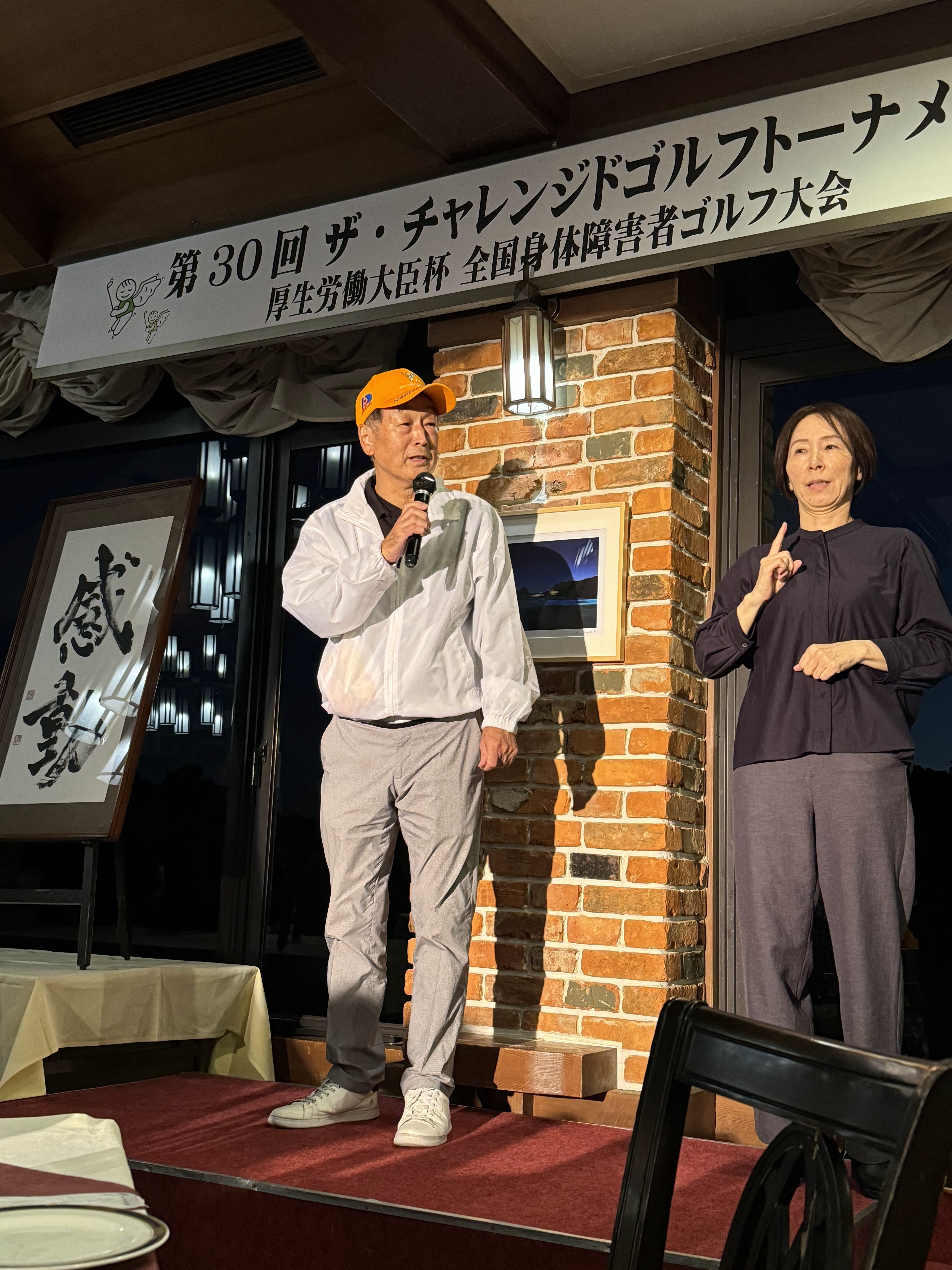 その後、4年前より小山田プロの紹介で参加をはじめた片足のプロゴルファー吉田隼人プロの乾杯で、和やかに交流会がはじまりました。