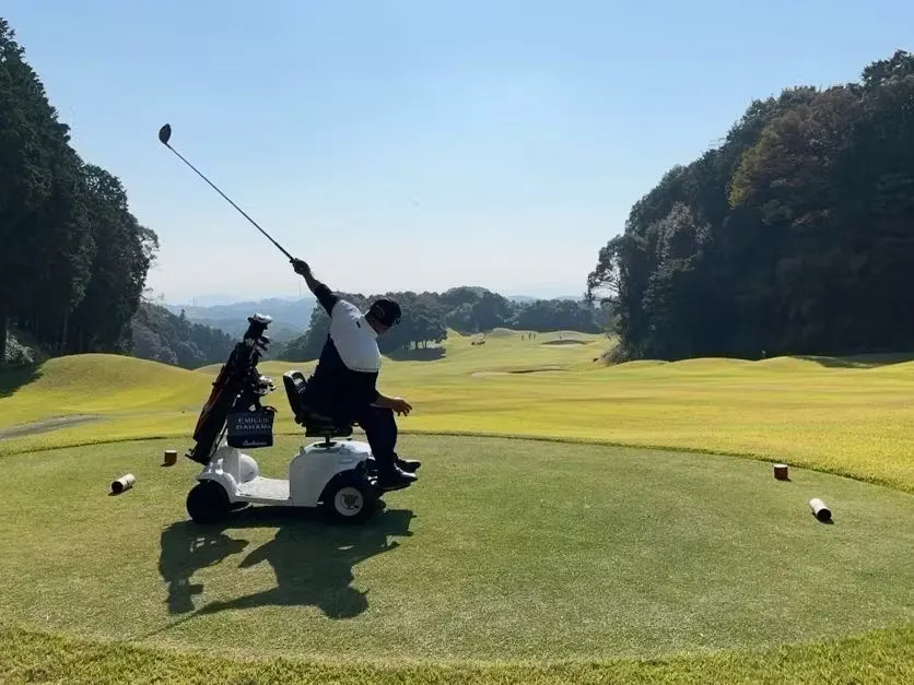 その大会に参加することを決め、片足でゴルフに再び挑戦しました。大会でのプレーを通じて、他の障がいを持つ方々と出会い、交流する機会も得ることができました。