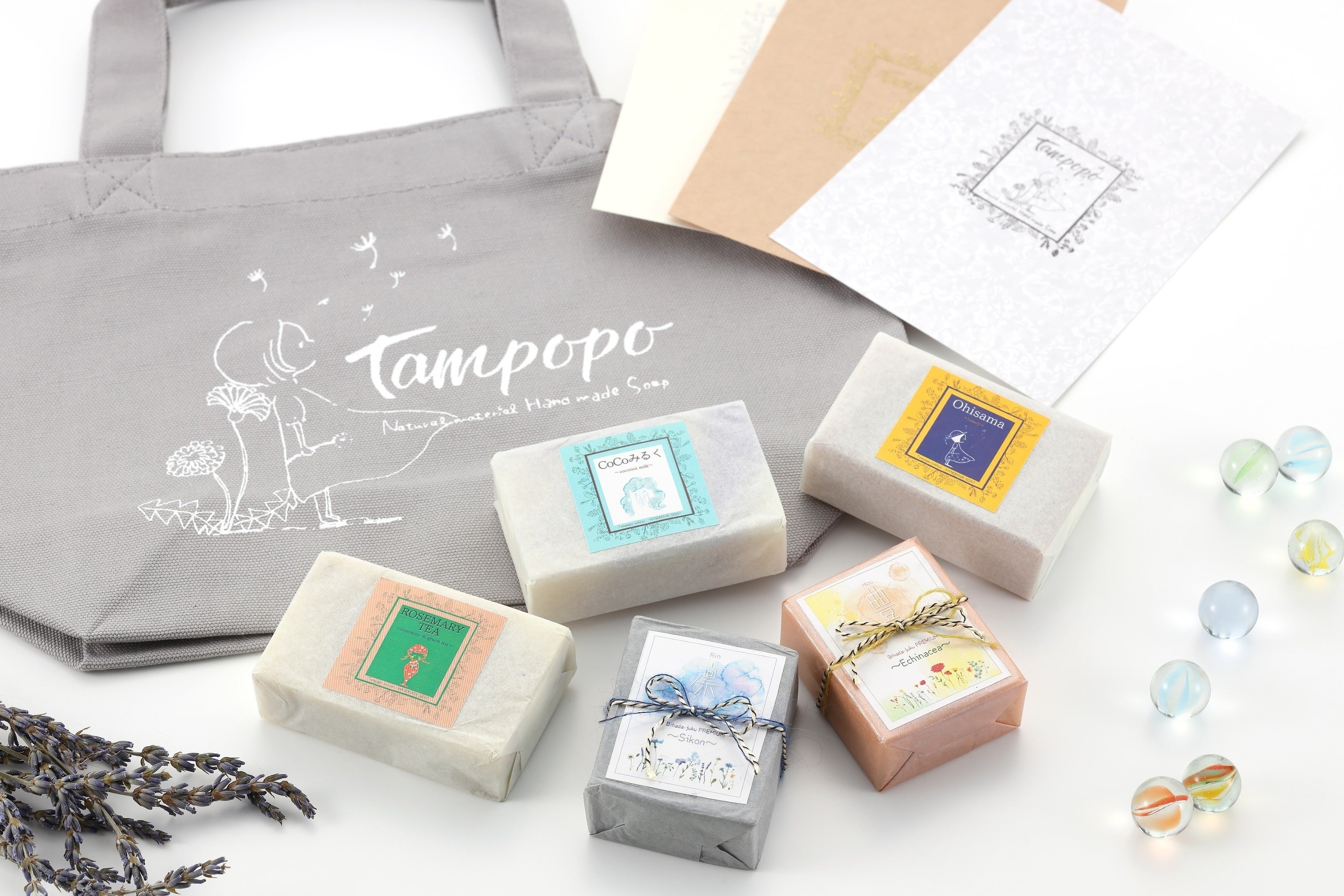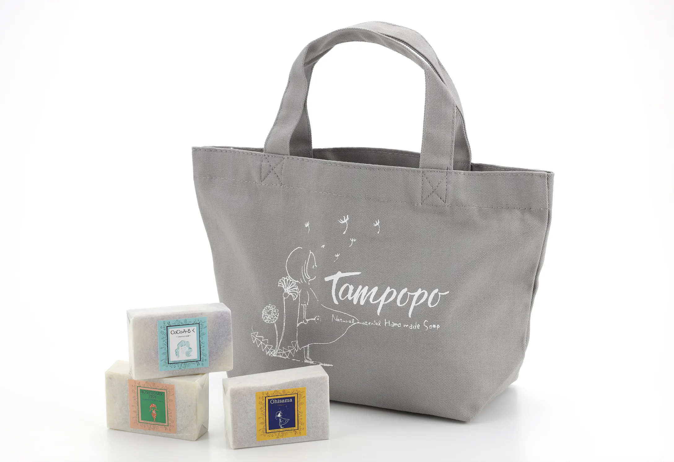 ・たんぽぽ石鹸全種類(5種類セット)+トートバッグ+ポストカード(3枚)
