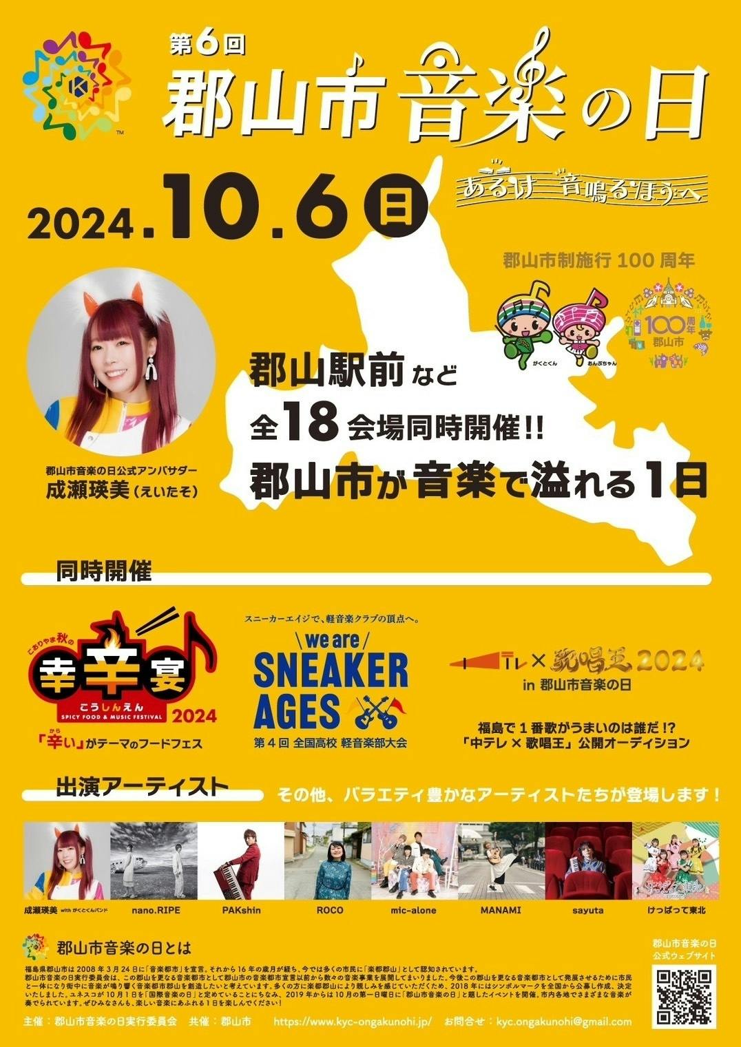2024/10/08 11:42☆たくさんのご支援・応援ありがとうございました☆ 2024年10月6日(日) 第6回『郡山市音楽の日』~あるけ 音鳴るほうへ~ が無事に開催でき終了することが出来ました。当日は、多少の不備はございましたが大きな事故もなくすべての会場が終えられたのもご協力・ご支援・応援いただきました皆さまのおかげです!改めて心より感謝申し上げます!! この活動を通じて、ご支援をいただいたことはもちろんですが、これまであまり接点のなかった世代の方々ともつながることができ、「楽都郡山」や「郡山市音楽の日」を知っていただけて、嬉しく思っております。 開催当日も想像の域をはるかに超えた皆さまからのご支援と心に沁み渡る数々のあたたかな応援の声にも、パワーをいただきました。当初は、会場も増え少し不安もありましたが、「音楽」の存在意義や活動の大切さを皆さまのお言葉から改めて実感する機会となりました。 しかしながらそのすべては「郡山市」があってこそ、そこにスタッフや協力者様がいてこそ、みんなが前を向いて進むからこそ達成できると想っております。その「目標」や「目的」をご支援・応援いただいた方、会場に足を運んでくださった方、郡山市音楽の日を想ってこれを読んでくださる方のおかげで今があると感謝しております!!「音楽」と「みんな」が安心して楽しめる社会の実現を目指して、皆さまとともに、一歩一歩、活動を進めることができる喜びをかみしめて、来年の開催に改めて挑戦していきます!本当にありがとうございました。今後とも「郡山市音楽の日」実行委員会一同よろしくお願いします!!郡山市音楽の日実行委員会一同活動報告「踊れ!ダンス御殿!!~郡山市音楽の日Spin off~」 2024年8月31日にKoriyama #9にて行われたダンスイベント「踊れ!ダンス御殿!!~郡山市音楽の日Spin off~」のメモリーズ動画になります。優勝者の皆さまには当日メインステージでダンスを披露していただきました。ご参加ありがとうございます!クラウドファンディング リターン品「ミニライブツアー」 今回はアーティスト様にご協力をいただき、企画させていただきました。当日は曇り空で小雨も降ってきてしまいましたが、支援者様の元気と笑顔で終始楽しく過ごすことができました!!ご協力いただいた「MANAMI」様・「sayuta」様・そして支援者の皆さまありがとうございました。「メインステージバックパネル」デザイン決定 メインステージのバックパネルデザインを開催当日にお披露目させていただきました。当日はセレモニーも開催させていただき、デザイン制作者様も遠方から会場に足を運んでくださいました。ご協力ありがとうございました!!※詳しくは各SNSで発信しております「郡山市音楽の日」でチェック!市政100周年記念「がくとくんのテーマソング」再レコーディング 当日は会場で、公式アンバサダー「成瀬瑛美」さんが生歌で披露くださいました。レコーディング時から忙しい中、本当にありがとうございました!!現在は楽曲をダウンロードできますので、ぜひ聞いてください!!「郡山市音楽の日」開催当日(メインステージ)※メインステージ専用の照明等も設置出来ました※出演者様とメインステージ専用の照明点灯【各SNS】・YouTube【 郡山市音楽の日チャンネル 】・X(旧Twitter)【 郡山市音楽の日 @kyc_ongakunohi 】・Facebook【 郡山市音楽の日 】・TikTok【 KYC.音楽の飛 郡山市音楽の日 】・Instagram【 郡山市音楽の日 @kyc.ongakunohi 】その他、当日の活動につきましては、各SNSで活動内容や状況を発信しておりますのでご覧ください。 もっと見る