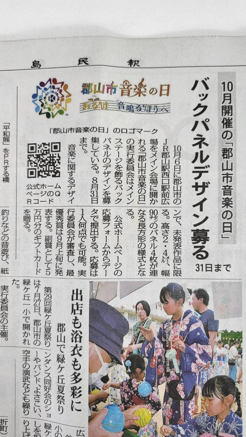 以前からお伝えしているメインステージを彩るバックパネルのデザインコンテストになりますが昨日『福島民報』さんに紙面にてご紹介いただきました。