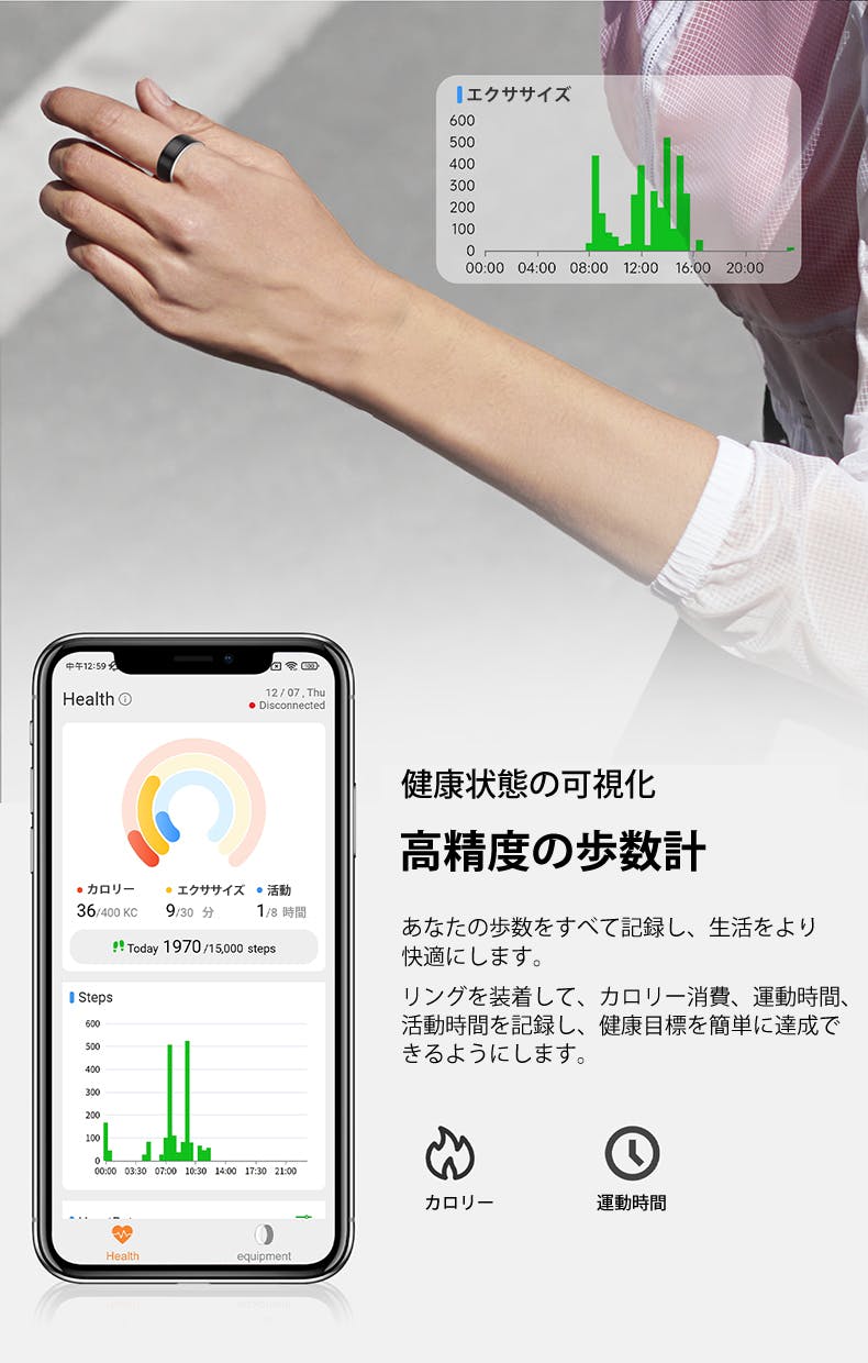 このスマートリングは、日常生活に自然に溶け込み、健康データをリアルタイムでトラッキングします。