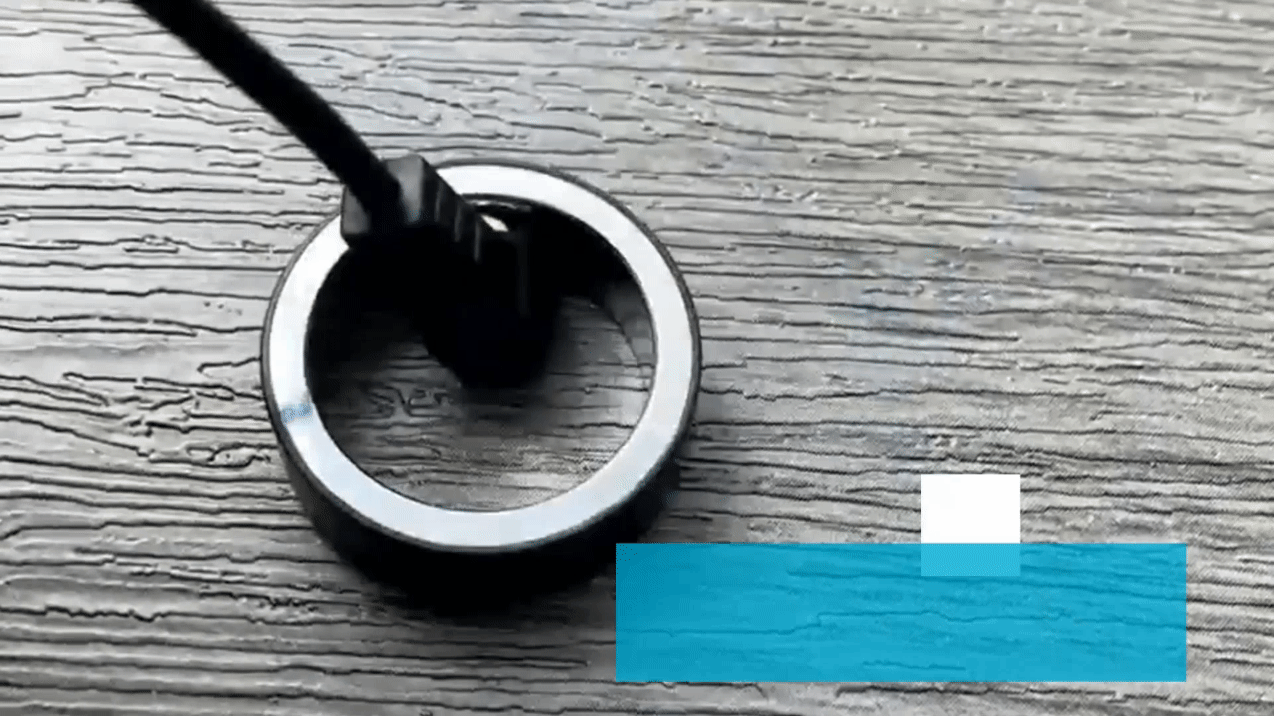 このスマートリングは専用充電器に置くだけで充電可能です。また、付属の充電ケーブルを使用すれば、外出先でも手軽に充電できます。