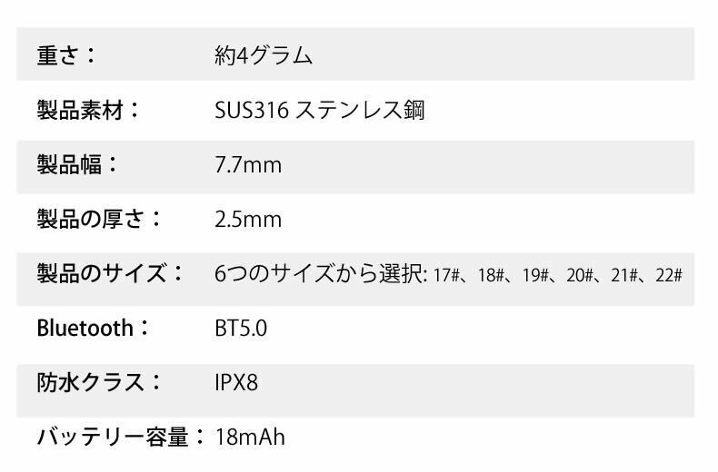 軽量・薄型デザイン: わずか4グラム、厚さ2.5mmで、つけ心地が快適。