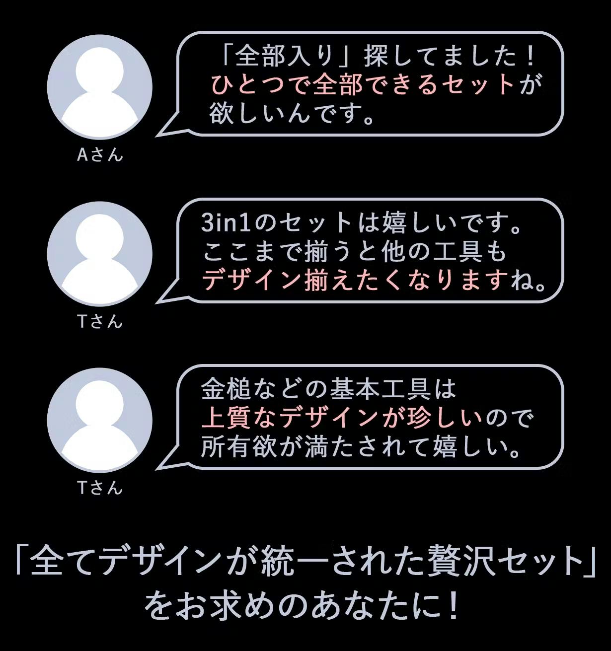 今回提案する商品は、3in1多機能ツールセットにベーシックなツールを追加したコンボセットと、ベーシックツールを集めたコンボセット。ぜひこれを広めたい、今までとは違った視点で提案できれば良いなと思いプロジェクトの立案に至りました。