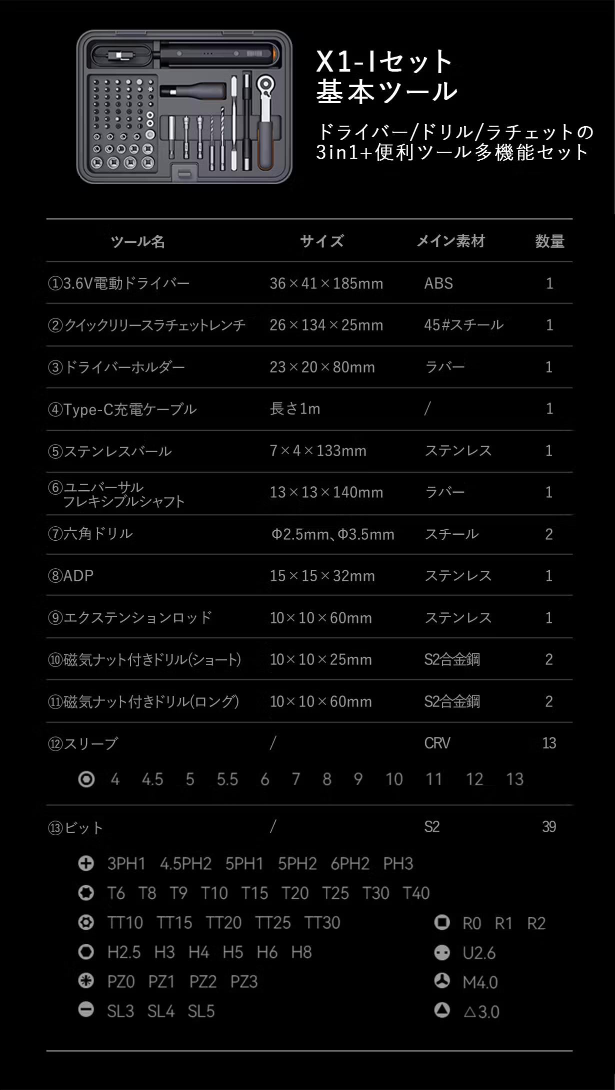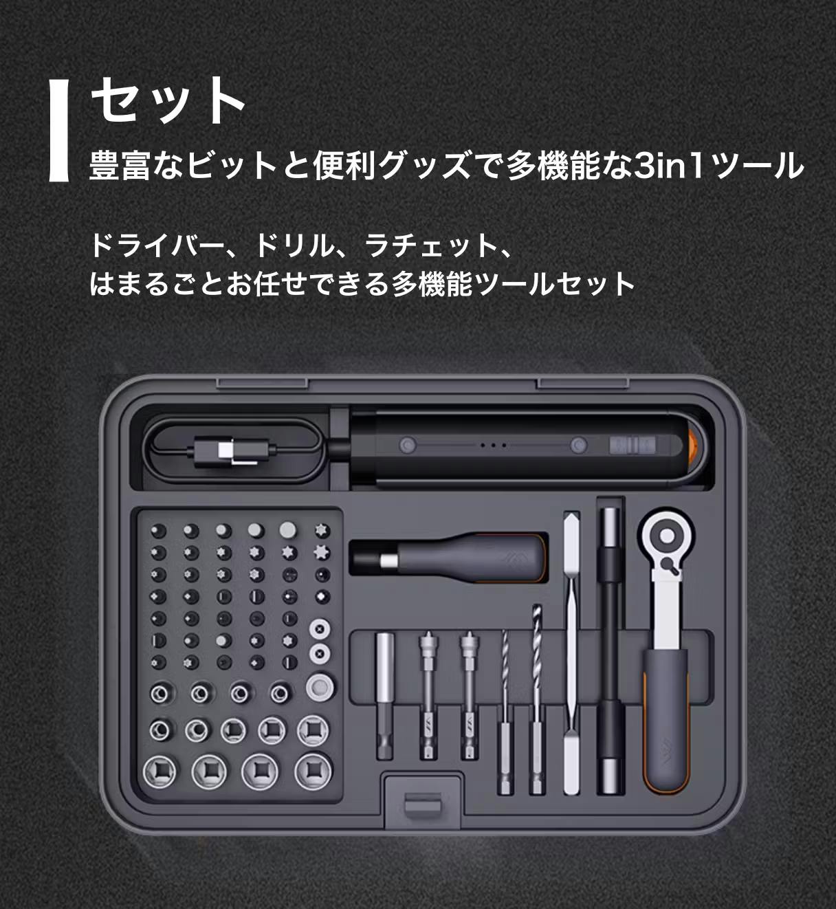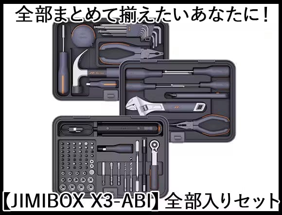 JIMIHOME X3-ABIはDIYヘビーユーザーにもぴったりな多機能ドライバー・ドリル・ラチェットの3in1セット+高品質ベーシックツールセットのコンボです。