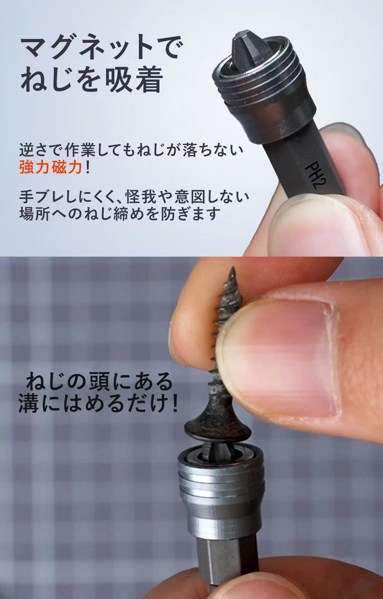 マグネットナットは、マグネットでネジを吸着することで、作業中のネジを固定します。