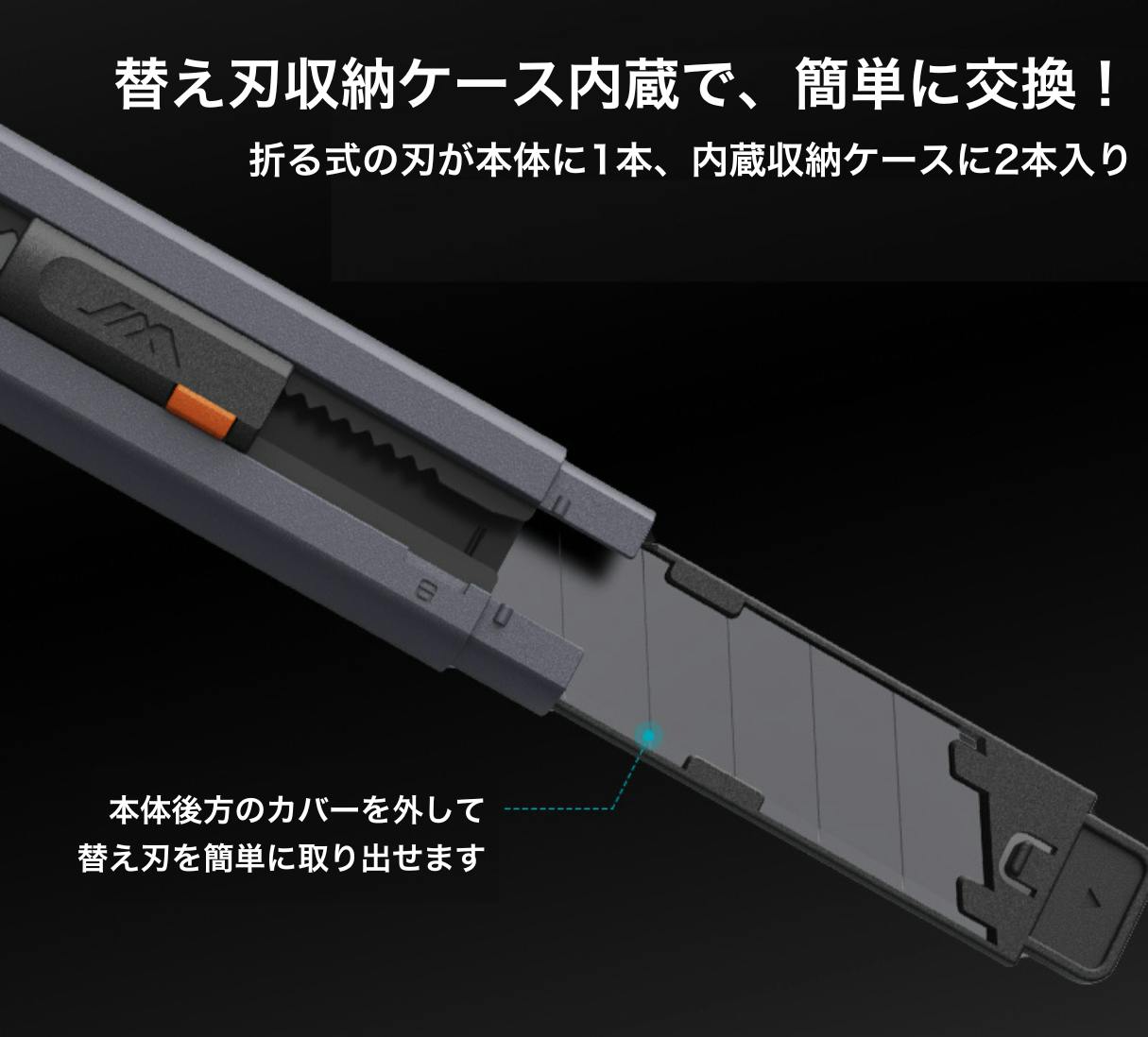 ヘッド先端部にはマグネット吸着で釘を収められるポケット付き!