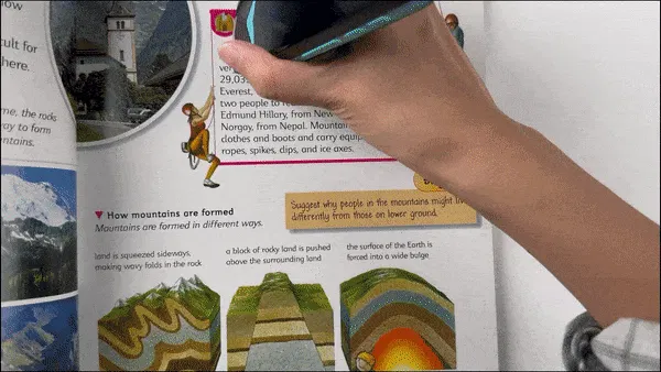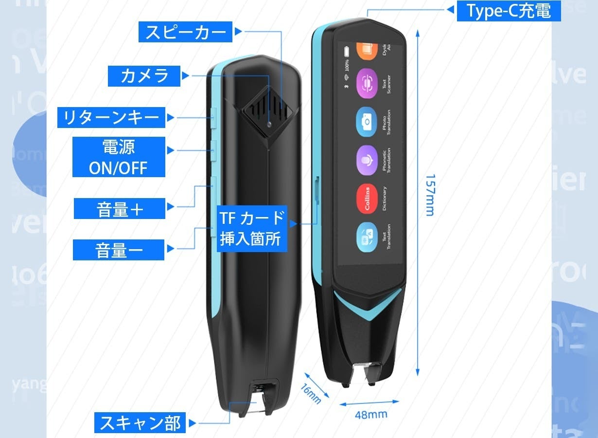 スキャンペンは高フレームレートのプロ仕様スキャナーを搭載しており、印刷面のテキストを1分あたり3000文字の速度で認識し、0.5秒以内に98%の精度で選択した言語へ翻訳できます。教科書や資料中に知らない単語やフレーズを発見したら、それをスキャンしてすぐに意味を確認したり、読み取った文章を再生して発音をチェックしたりできます。