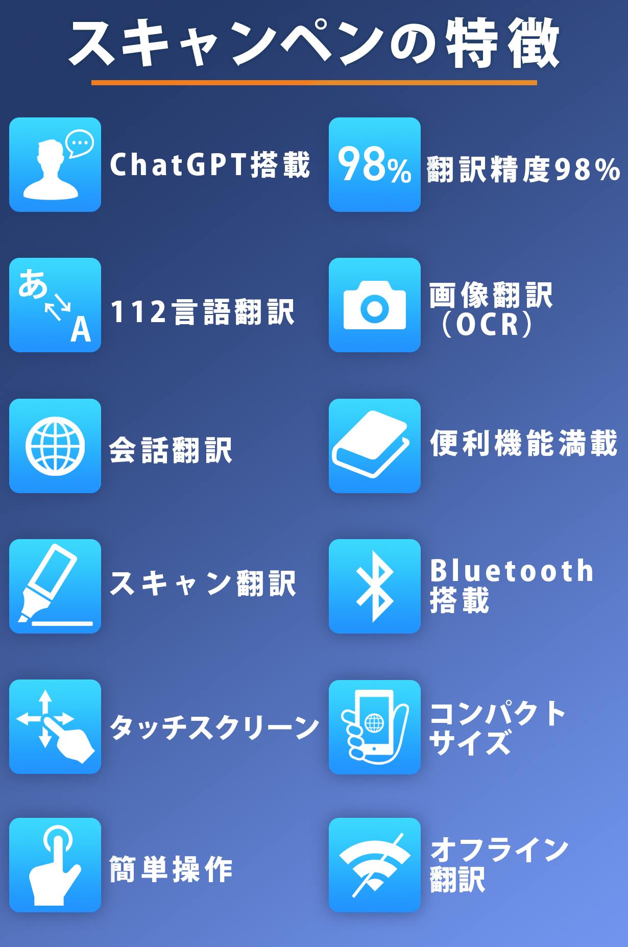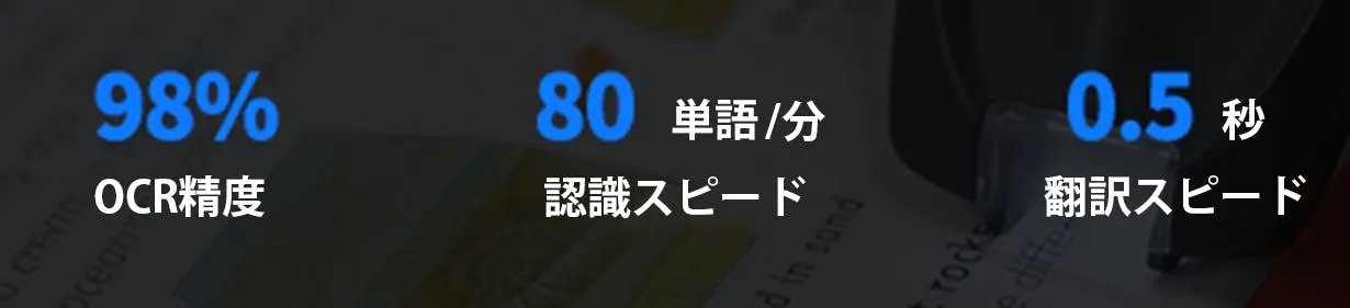 ChatGPT搭載翻訳ペンはOCR技術を採用し、認識精度は98%と非常に高いです。認識速度も速く、1分間に80単語を認識できます。また、翻訳速度もわずか0.5秒。紙の辞書を参照するよりも50倍速い計算となります。