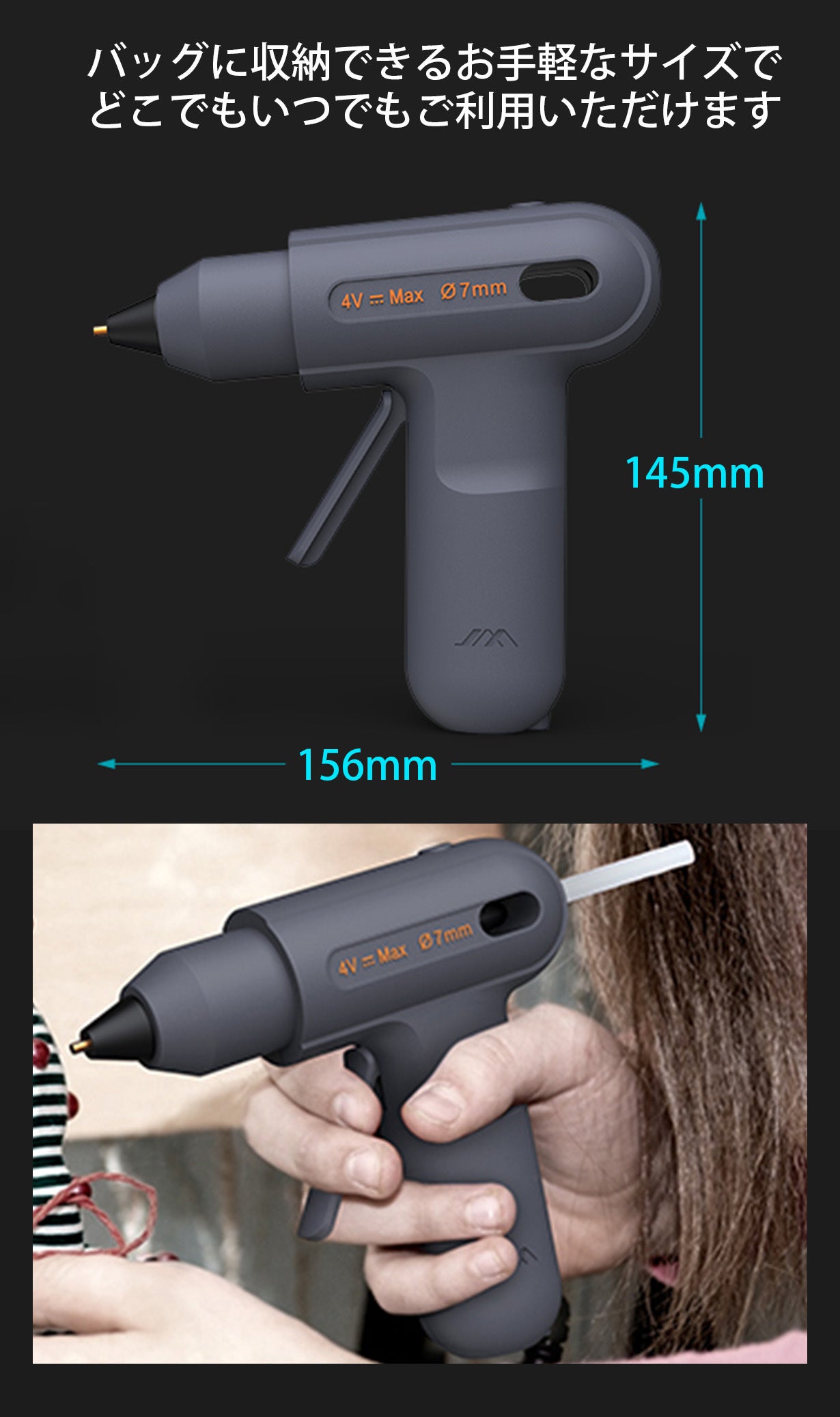 JIMI GLUE GUNは、厳格な安全基準を満たしており、ノズルには直接触れても熱さを感じにくいように、周囲をシリコン層で覆った接触防止保護がついているなど耐熱性と安全性に配慮した設計がなされています。