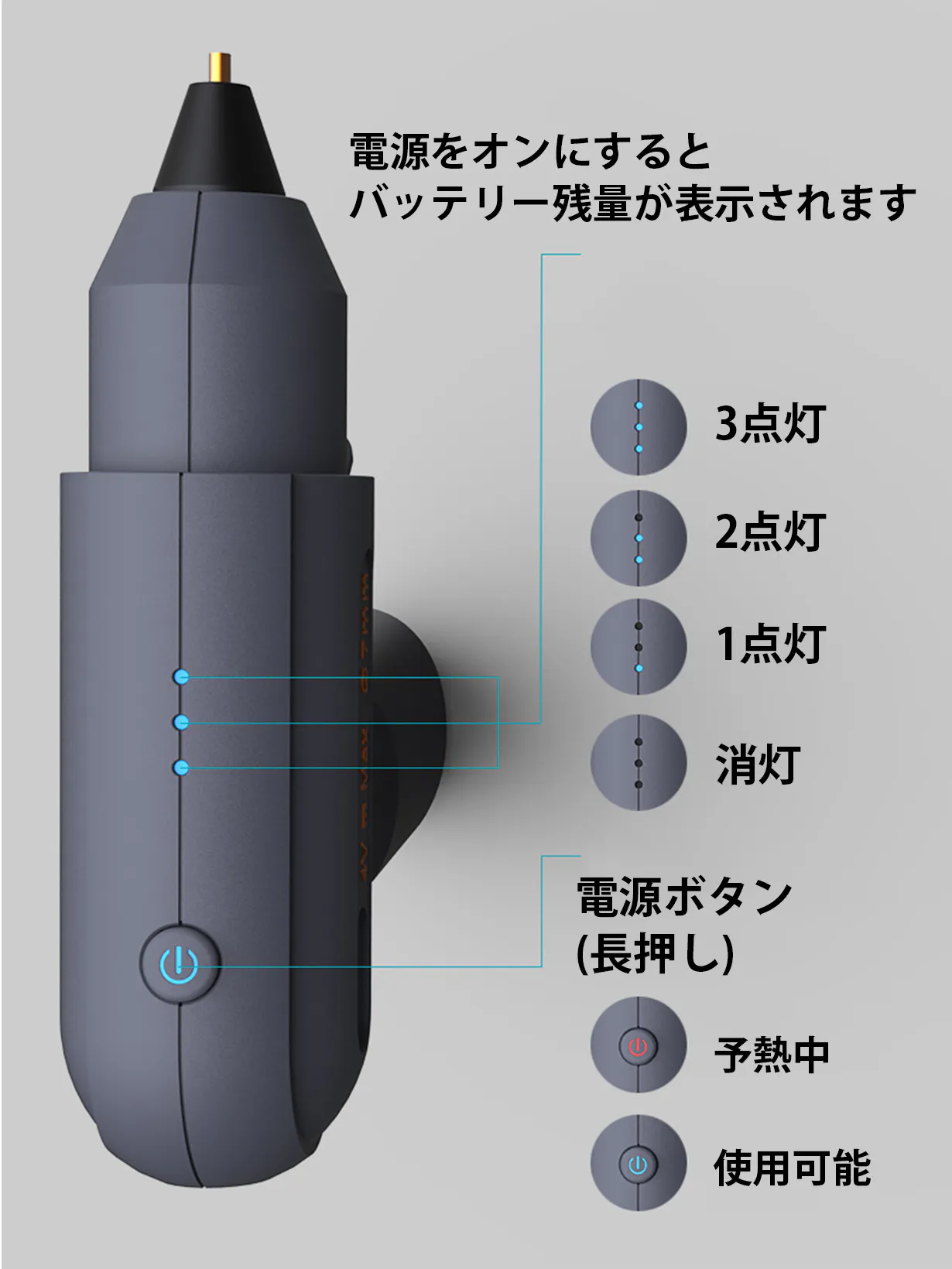 インジケーターの点灯数によって残量が分かります