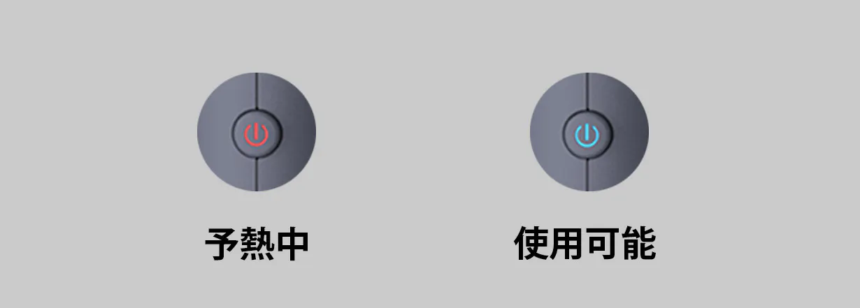 青色点灯:予熱完了。使用できます。