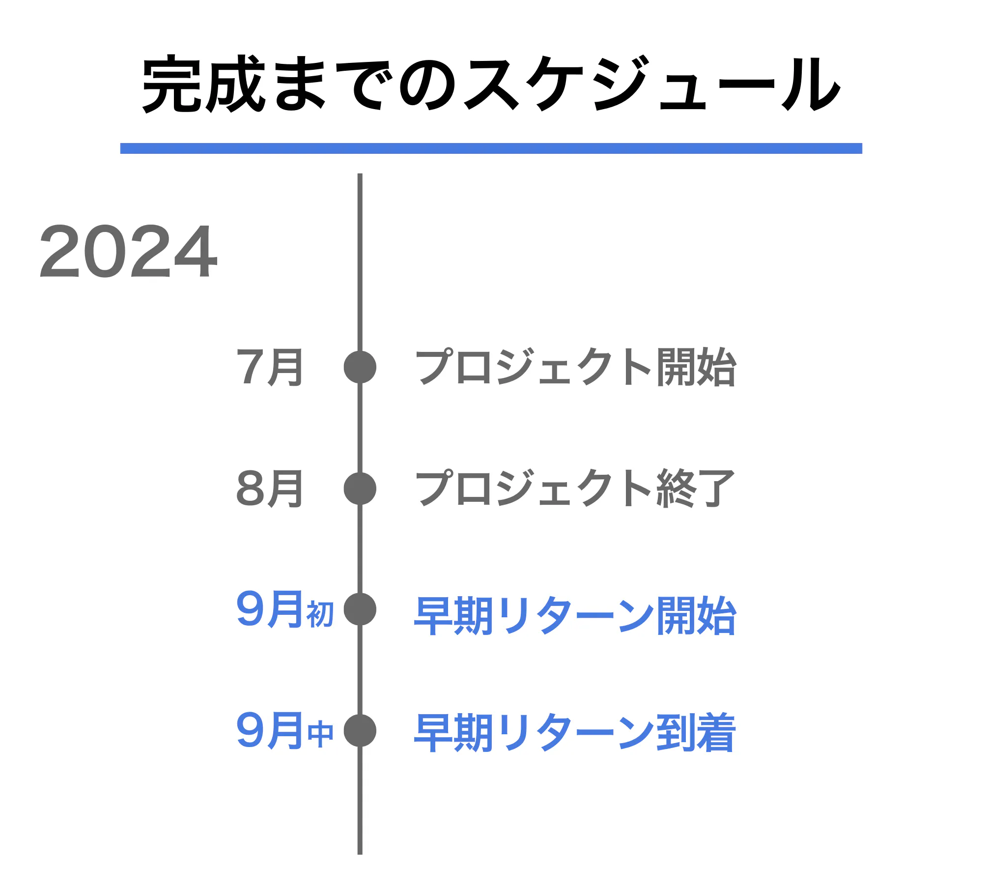 ※本文中に記載させていただいたスケジュールは、あくまでプロジェクト公開時点の予定です。支援の性質上、配送遅延のおそれがございます。