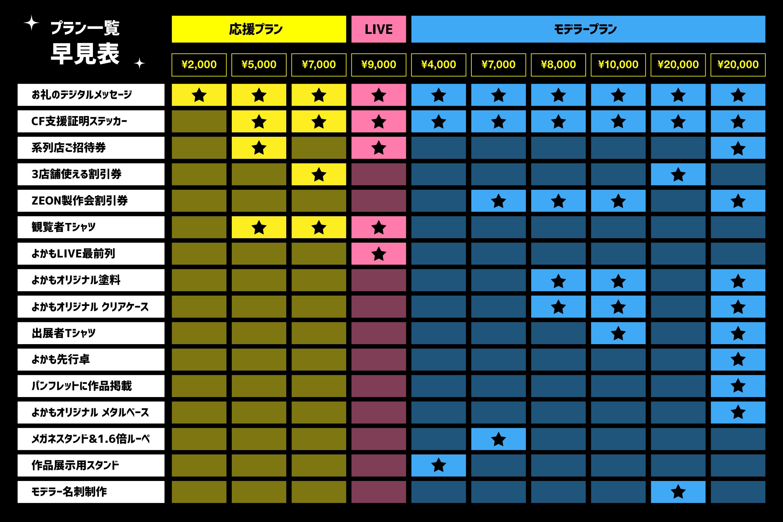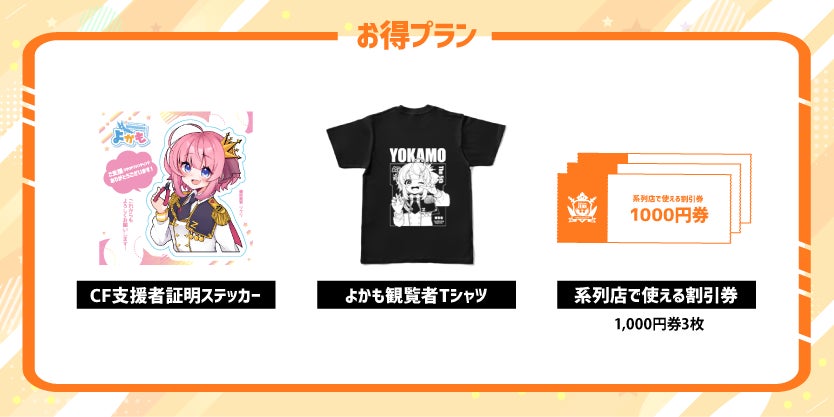 LIVEだけでなく、よかも展示会を楽しんでもらうために観覧者Tシャツや、系列店も楽しめる招待券3枚もついております!