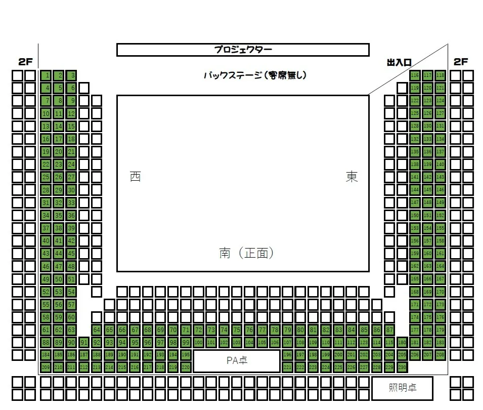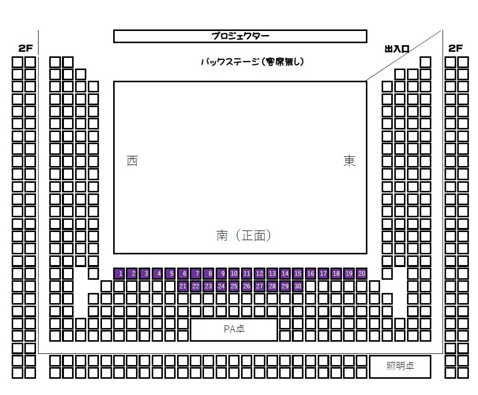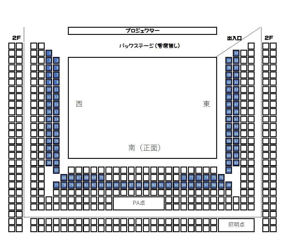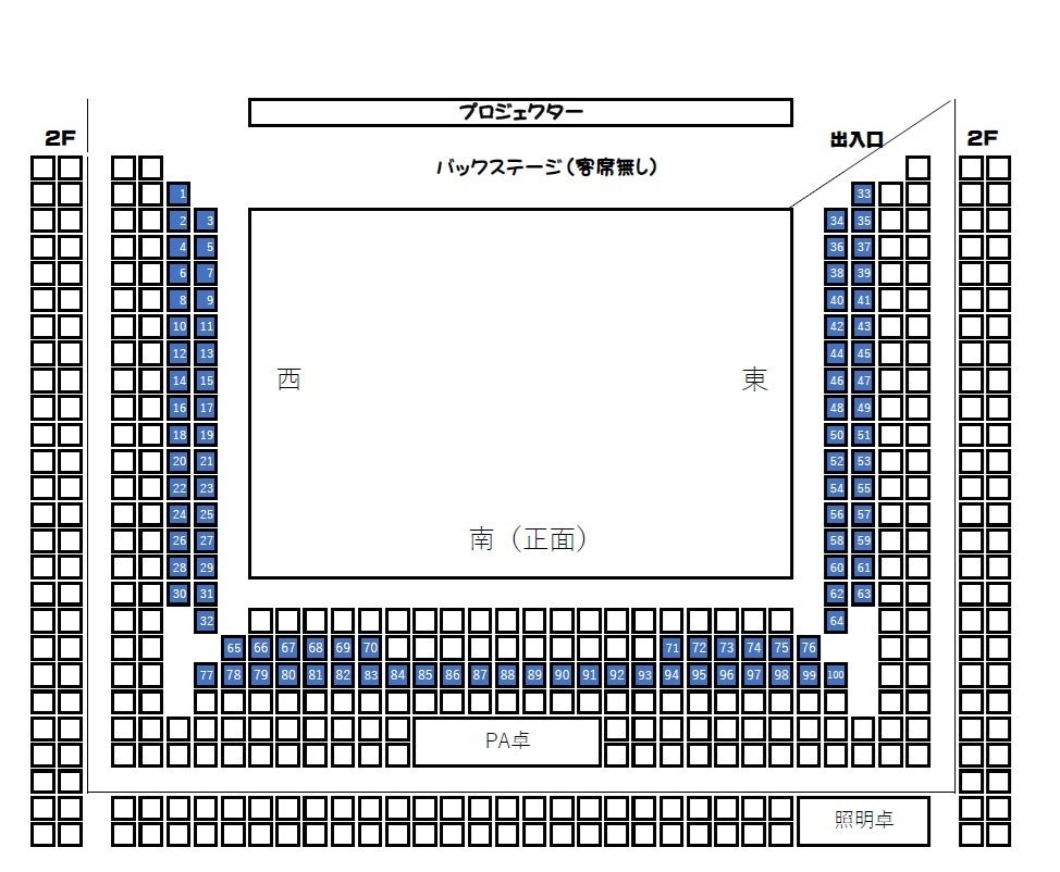 画像の青い座席部分が20,000円・10,000円のS1エリアになります