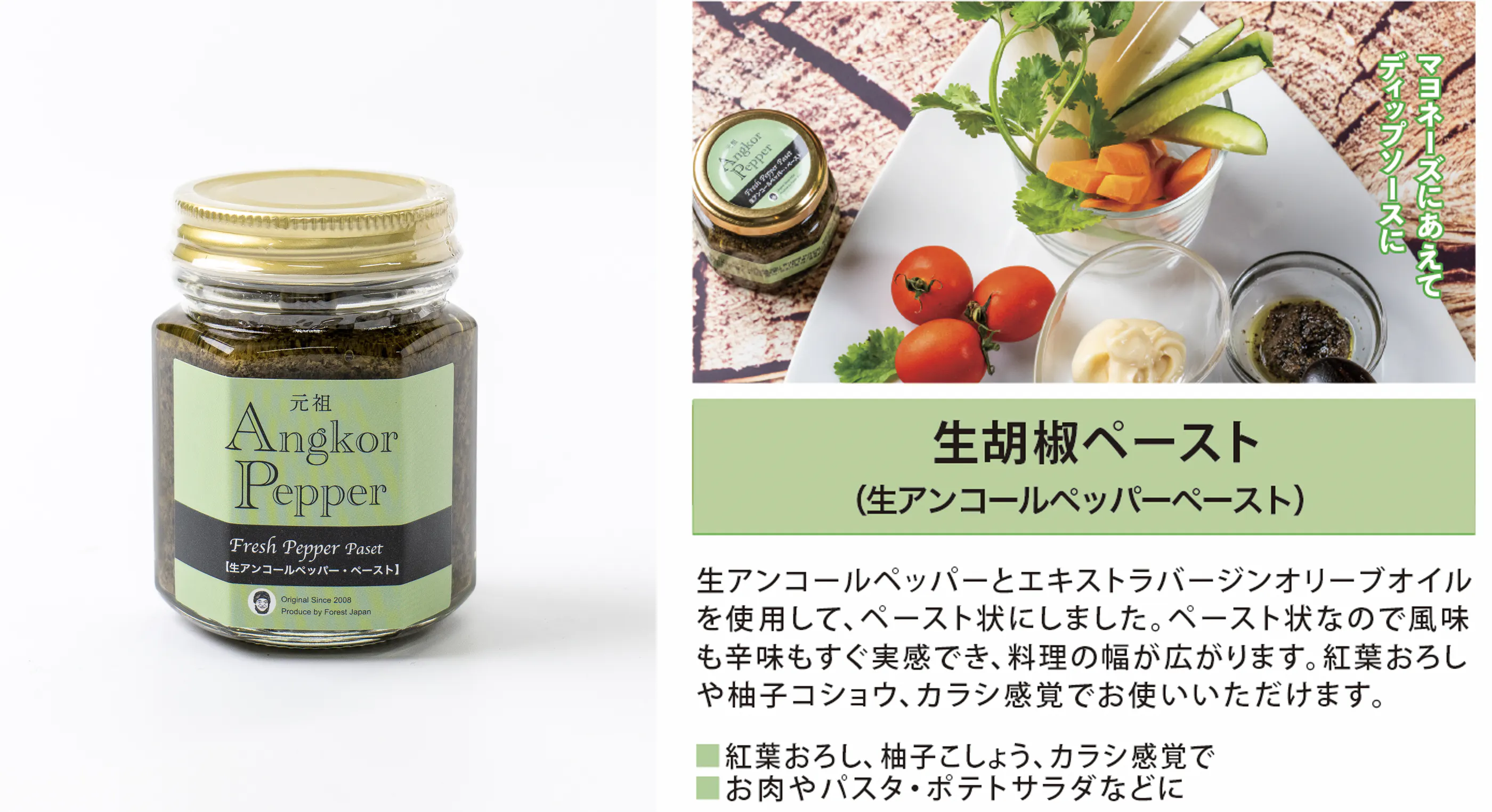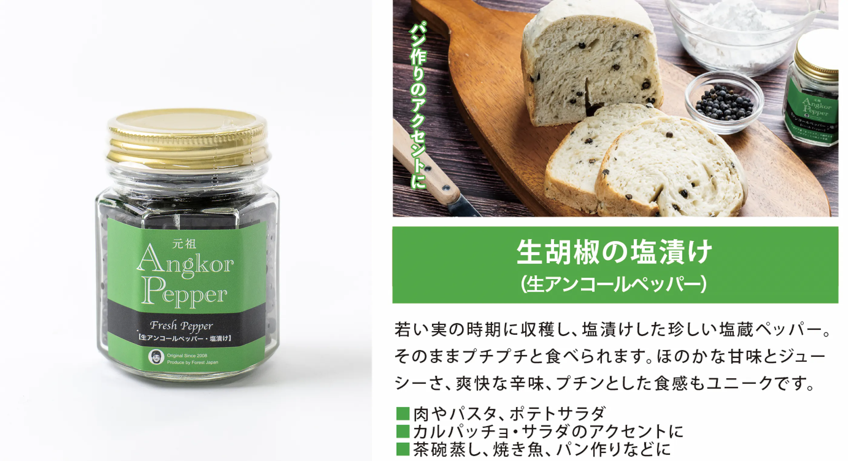 しかし、カンボジア国外にも美味しいコショウを届けたいという想いから、試行錯誤を重ねて塩漬けの生コショウを作ることに成功しました!生コショウは皮のまま丸ごと美味しく食べていただけます。このページをご覧のあなたも、世界が認める幻のコショウの味が気になってきたのではないでしょうか?