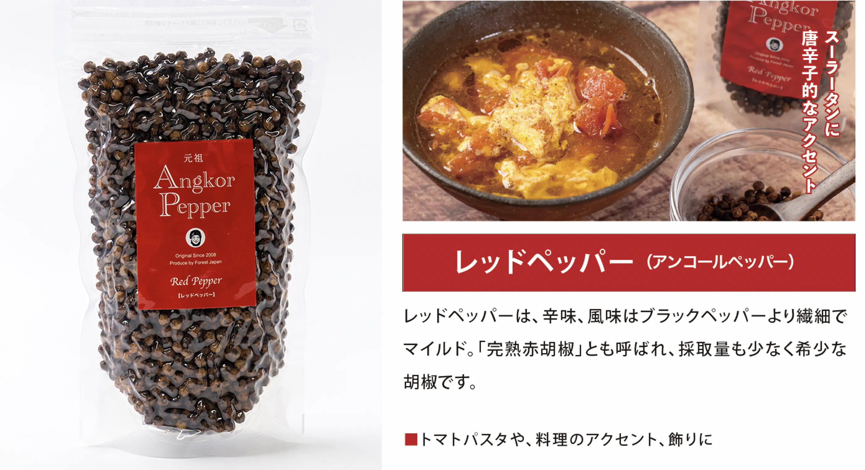 この特別なカンポットペッパーを私たちは仕入れており、「アンコールペッパー」と名付けて日本の皆様へお届けしています。
