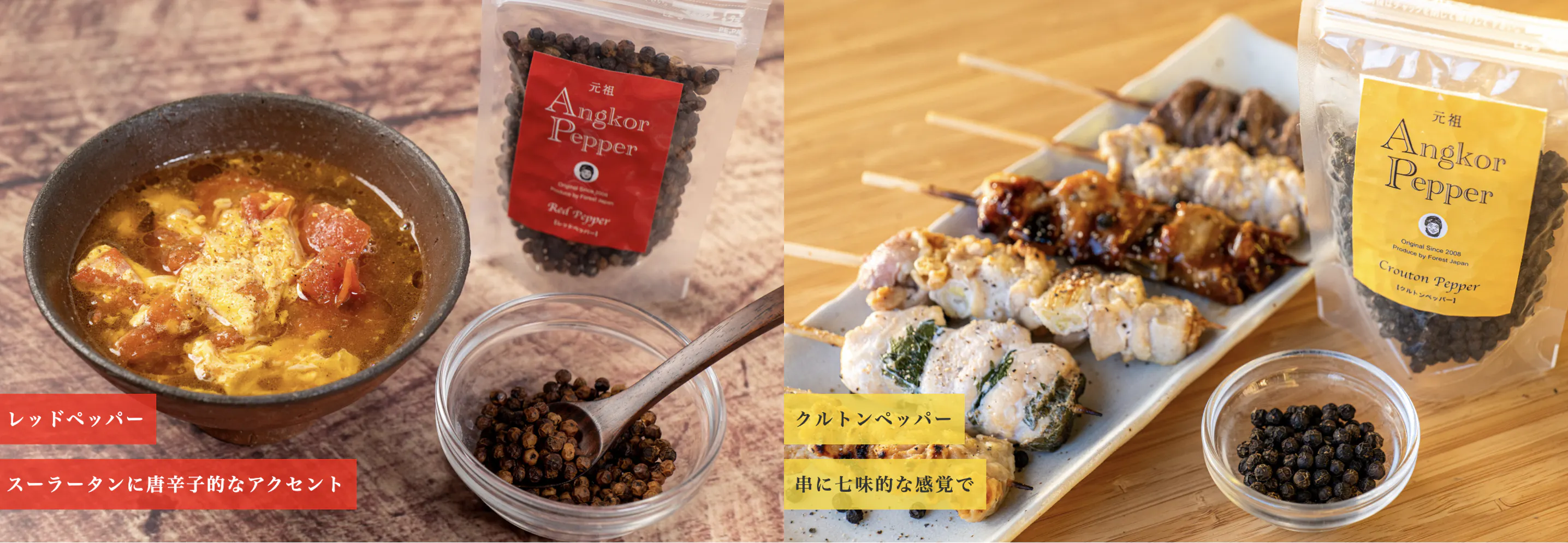 世界遺産アンコールワットのイメージと、「何度も味わってほしい」という意味を込めて、「アンコールペッパー」と名付けました。