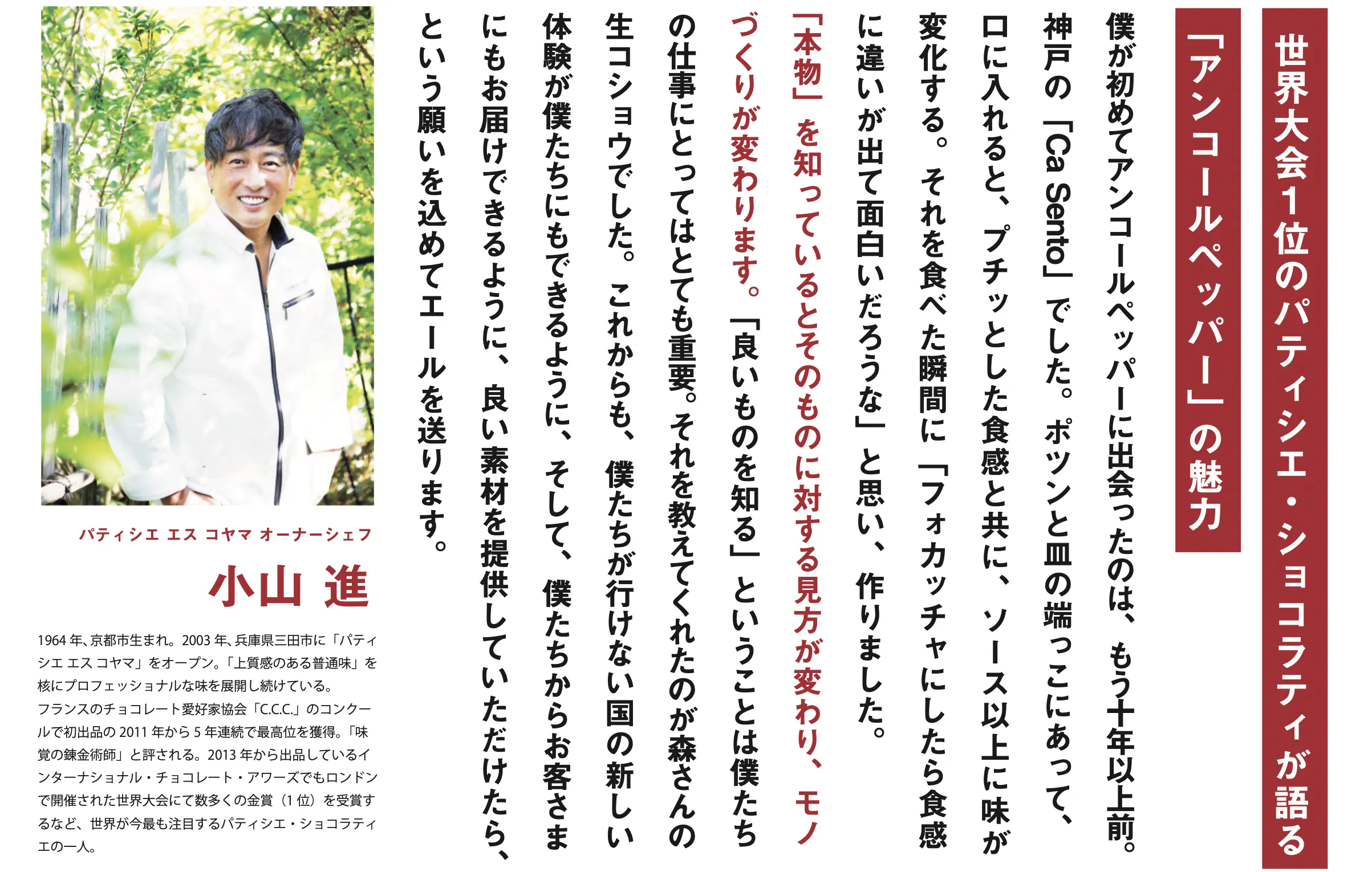 加えて、全国のミシュランのお店約40か所で「アンコールペッパー」が採用されています。是非とも、三ツ星シェフ御用達の味をご家庭でお楽しみいただきたいと思っております!
