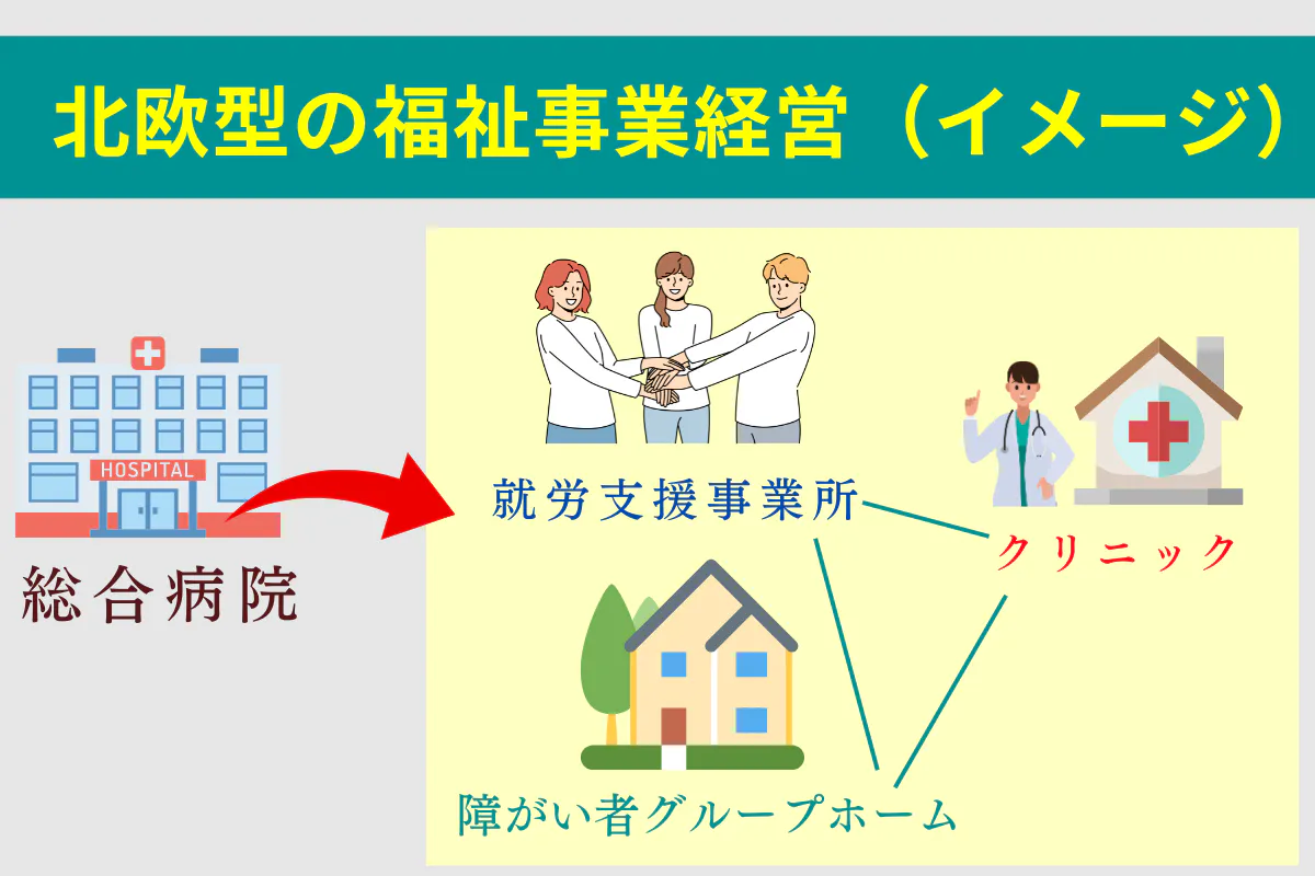 この社会問題を解消するためのヒントであり、アプローチとなるのが、幸福度が高く福祉先進国の北欧型の福祉事業経営です。
