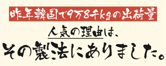 多くのお客様に支えられた圧倒的人気と実績!おかげさまで韓国内実店舗数№1,年間出荷量約100トン