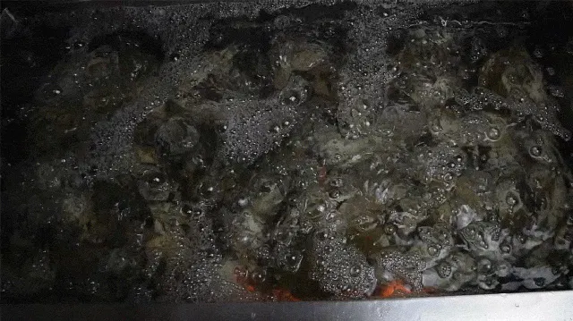 この音がたまらなくいいんです。(味噌が入ってるこの甲羅は大事にとっておく)