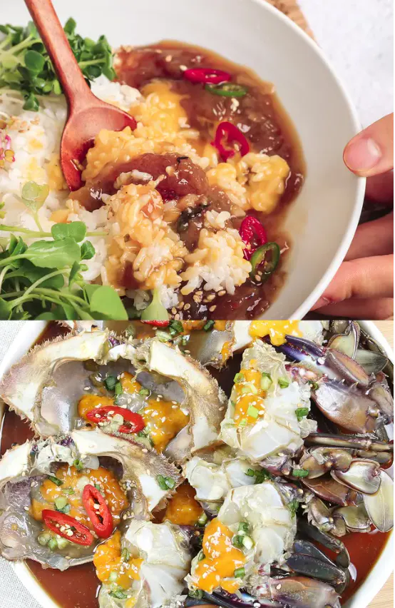 カンジャン(간장)は韓国語で醤油で、ケ(게)はカニ、ジャン(장)は漬けを意味します。
