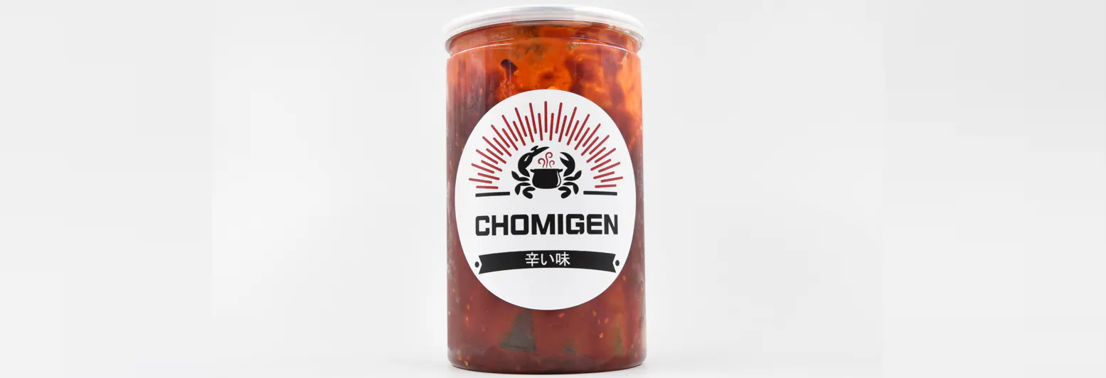 調味カニの事を韓国語で「チョミゲー」と言う所から持ってきてこれに決まりました。今後FOUSKOMAとNMRS Japanの共同作業の食材は全てこのブランド名です。