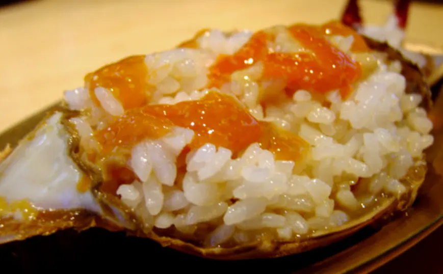 既に半分にカットしたカニが、甘辛い味噌にあえてあるので、薄いビニールなどの手袋をして、できれば前掛けなどして服が汚れないようにして食べましょう。そのまま絞り出しながら吸って食べる、又は、ごはんや皿の上に絞り出して食べてください。