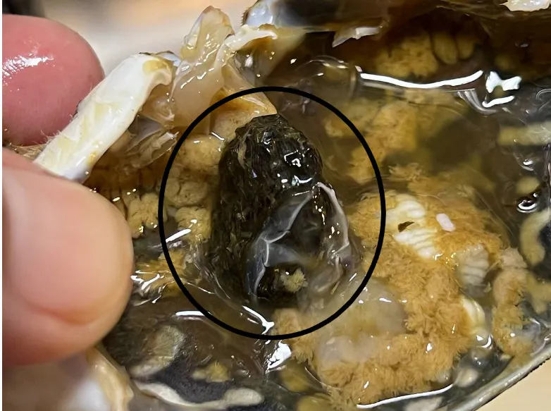 ☝解凍個体の場合、甲羅側に残る事もあります。泥、砂利、他の甲殻類の殻などがある場合が多いので、取り除きます。