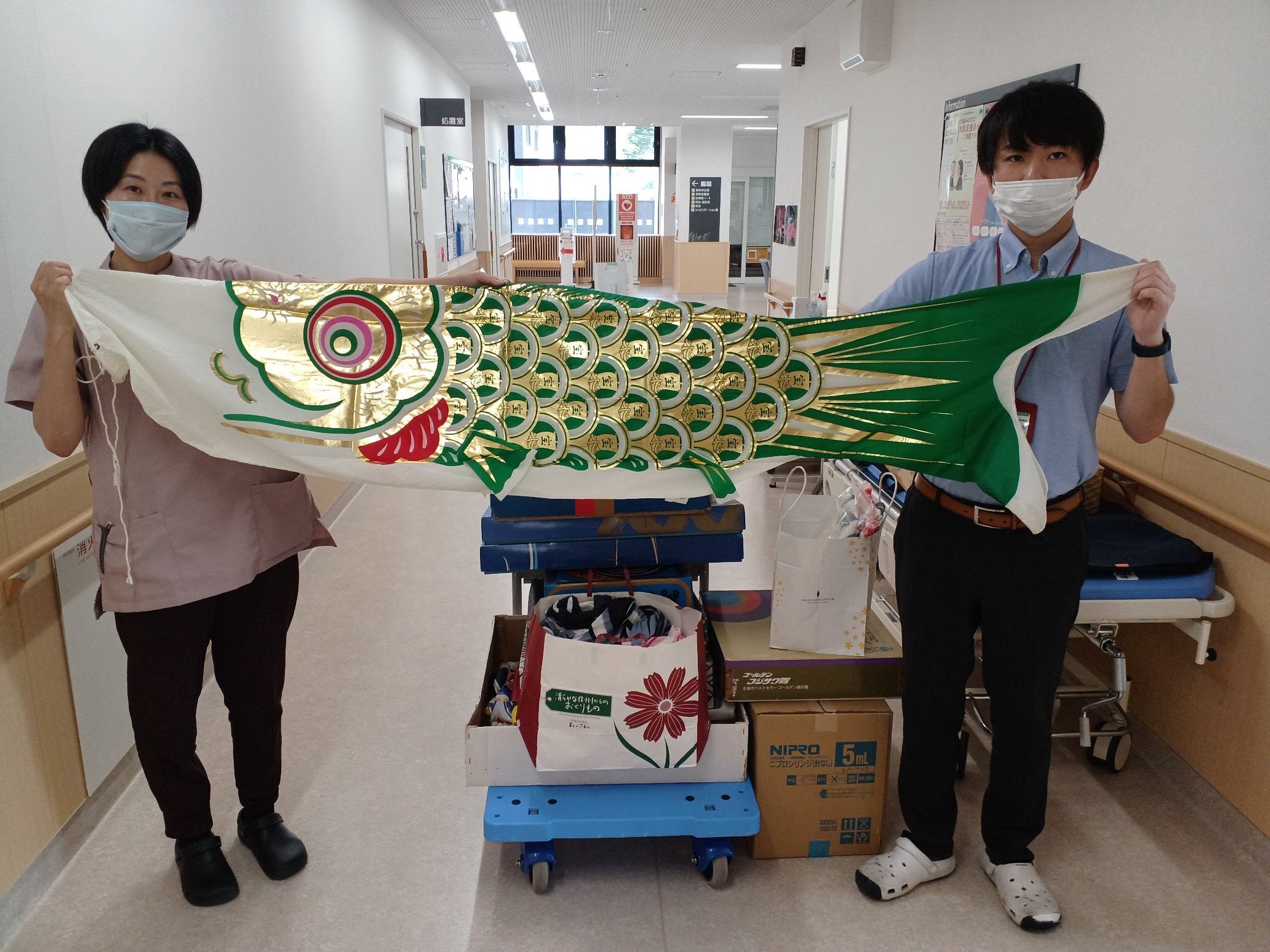 私たちの病院には長期的に入院している患者さんが多く、日々の生活に少しでも楽しみや明るさを届けたいという想いから、地域の町民の方々にこいのぼりの寄贈を募りました。ありがたいことに、13人の方々から寄贈がありました。これをきっかけに、さらに多くのこいのぼりを集め、病院の敷地内に設置することで、患者さんや保育園の子どもたちが喜び、元気を取り戻すことを目指しています。