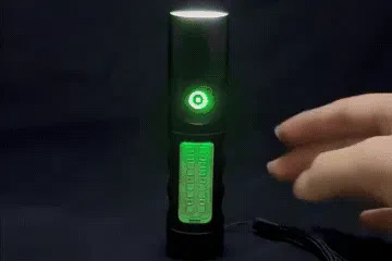 また、点灯時にはスイッチが緑色に点灯するため暗い場所でも簡単に操作できます。