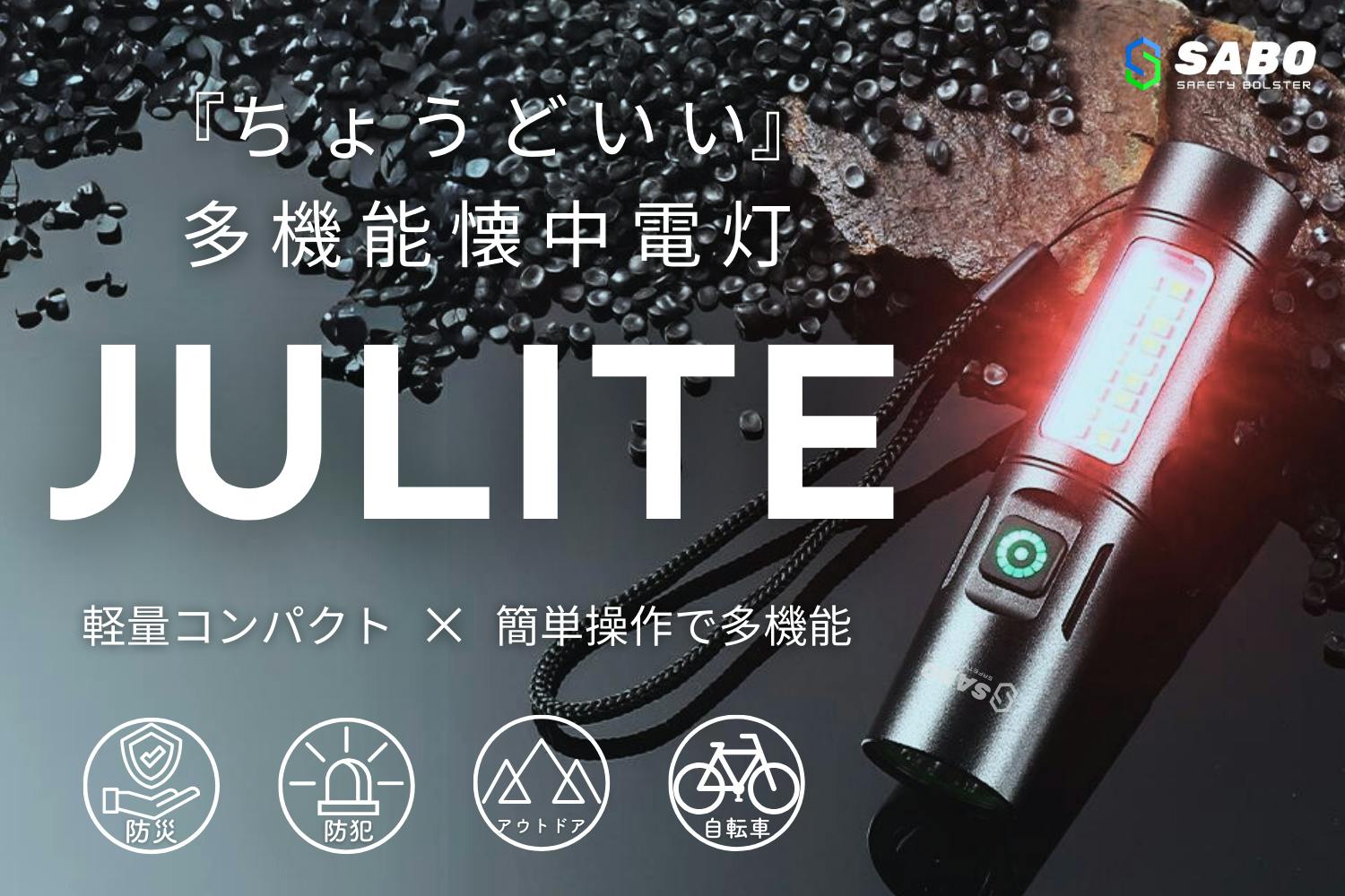 JULITEは、コンパクトで軽量(Lite)でちょうどいい(Just right)多機能懐中電灯(Light)を開発したいという発想から生まれた製品です。
