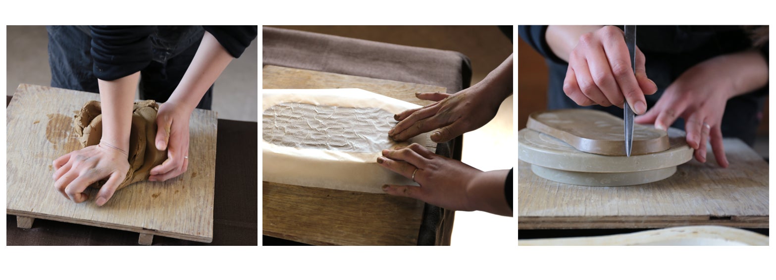 裏面は指で模様をつけることで、工業的な製品ではなく人の手作業で作られた温かみを演出しています。