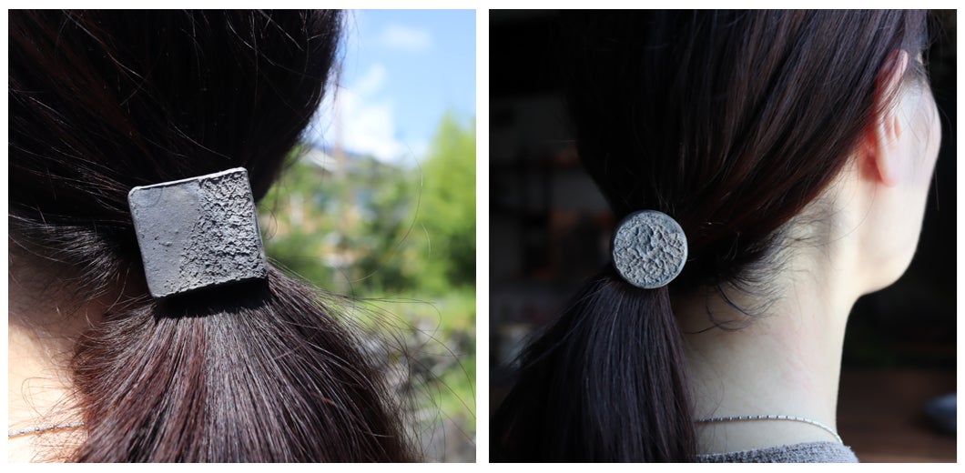 ヘアゴムは瓦の表面をあえて荒く仕上げ、表情を出しました。