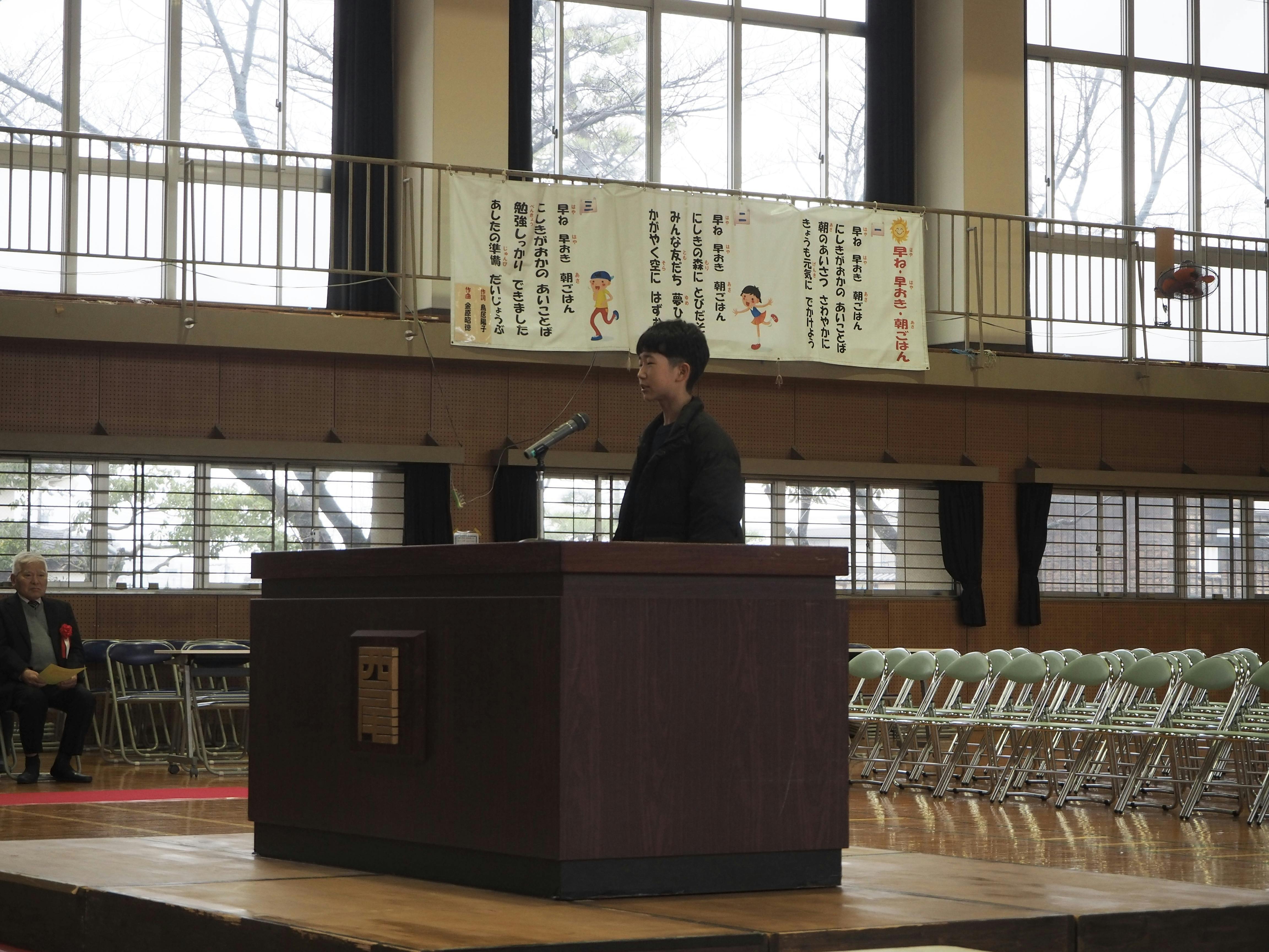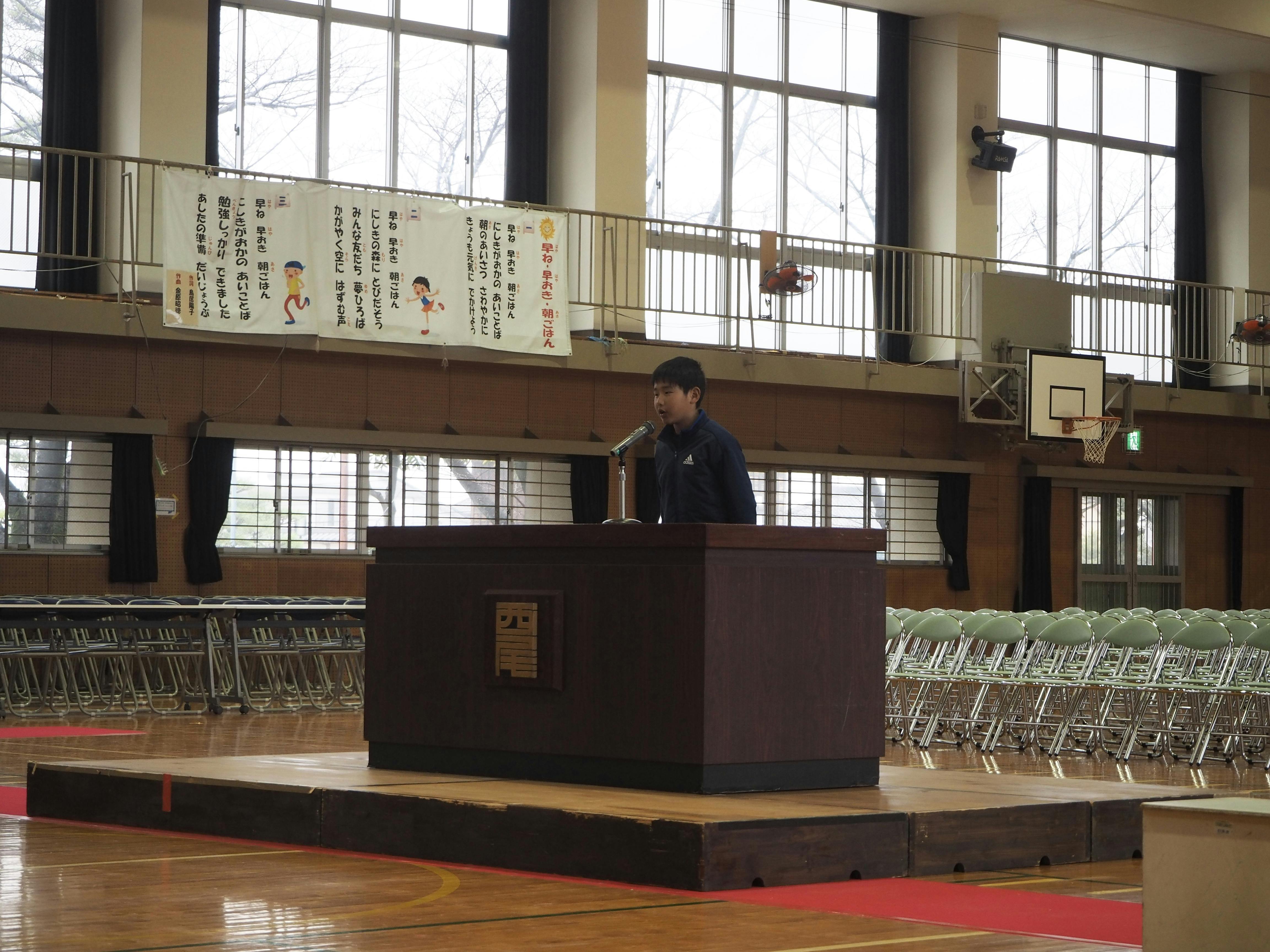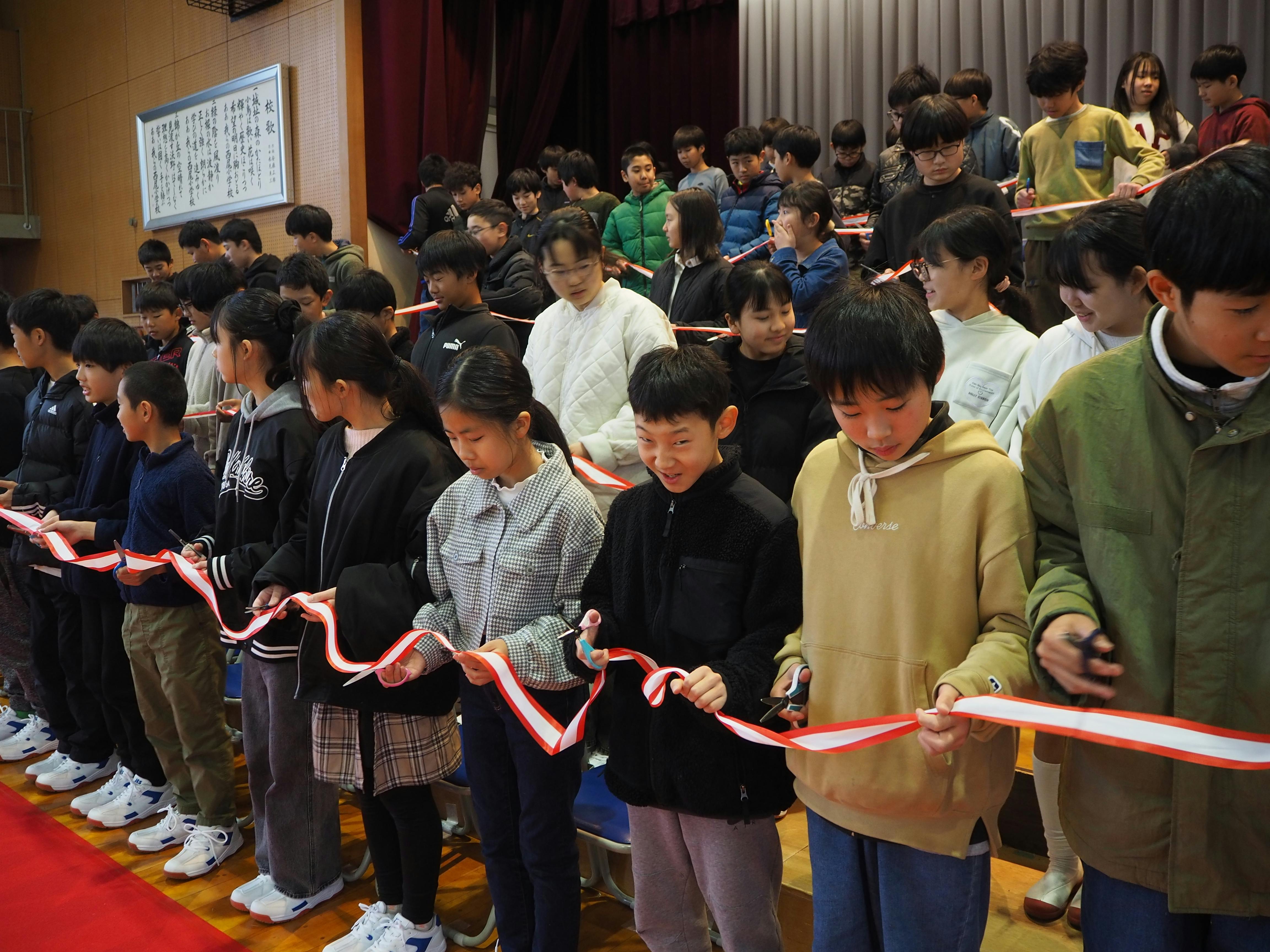 3月11日(火)の5時間目、ビオトープの改修記念式典を開催しました。今回の式典では、6年生に加え、クラウドファンディングにご支援してくださった方々にも来賓としてご参加していただきました。雨が降ってしまったため、式典は体育館で行い、当初予定していた生き物の放流は、後日行いたいと思います。これまでの活動の中で、多くの方々にご理解とご支援をいただけたおかげで、本日の式典を迎えることができました。本当にありがとうございました。今後とも本校の教育活動にご理解とご協力いただけたら幸いです。よろしくお願いします。