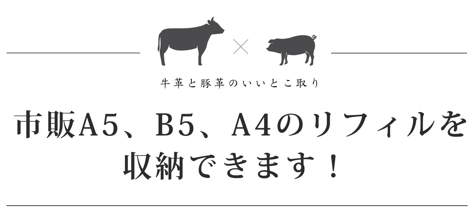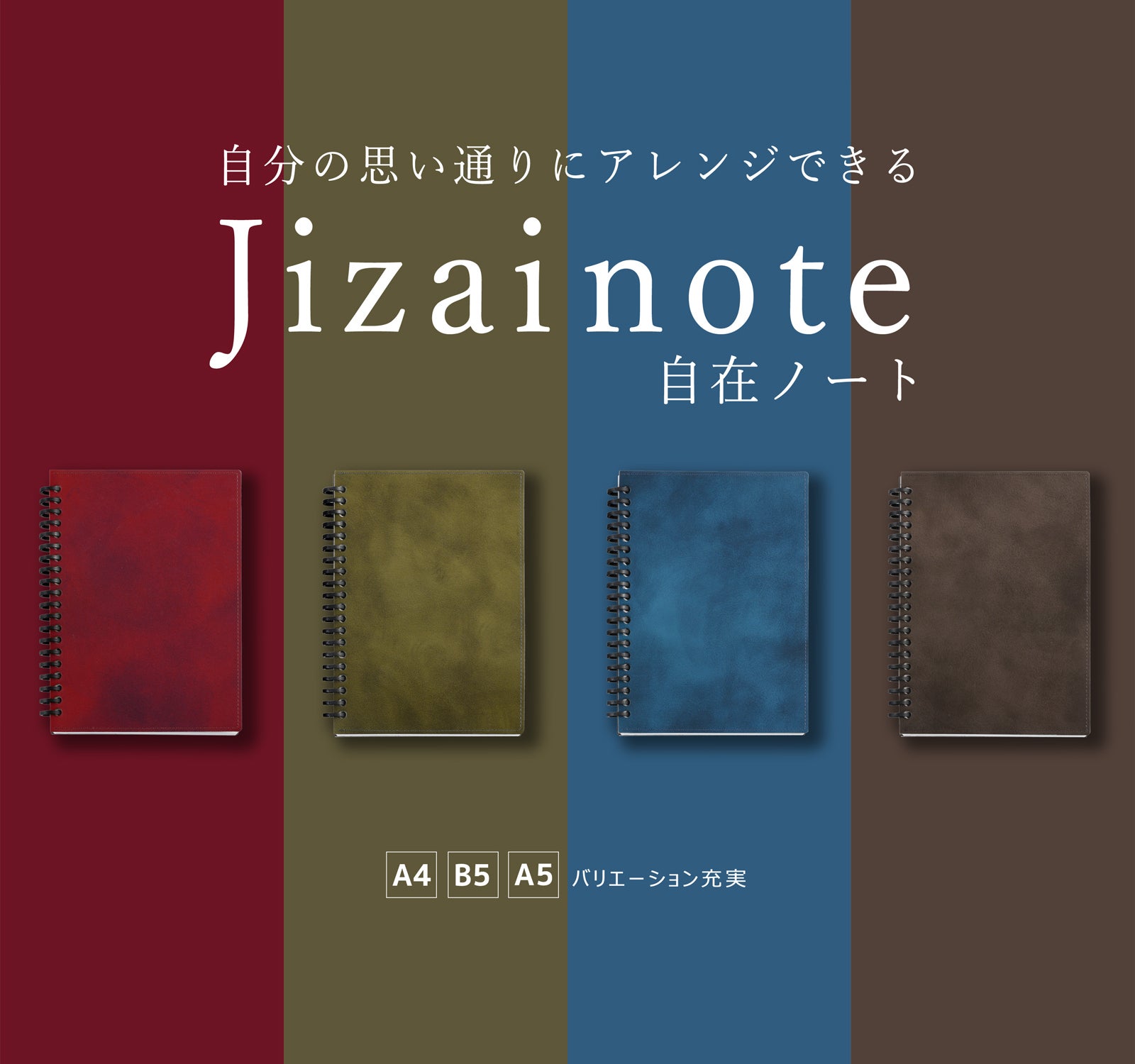 YOSHINA自在ノートは、「A5」、「B5」、「A4」3サイズの革表紙とリフィルをご用意しました。