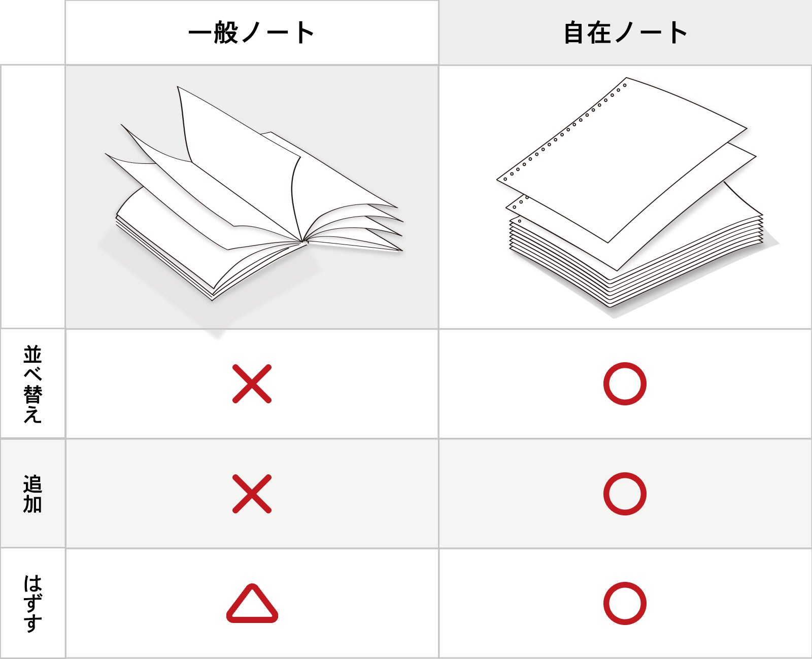 今まで、使用済みのノートを保管するとき、本棚または引き出しに重ねてしまっていませんか。また、リングノートの場合、リングが邪魔でなかなかきれいに並べられないことにイラっとしたことがありませんか。