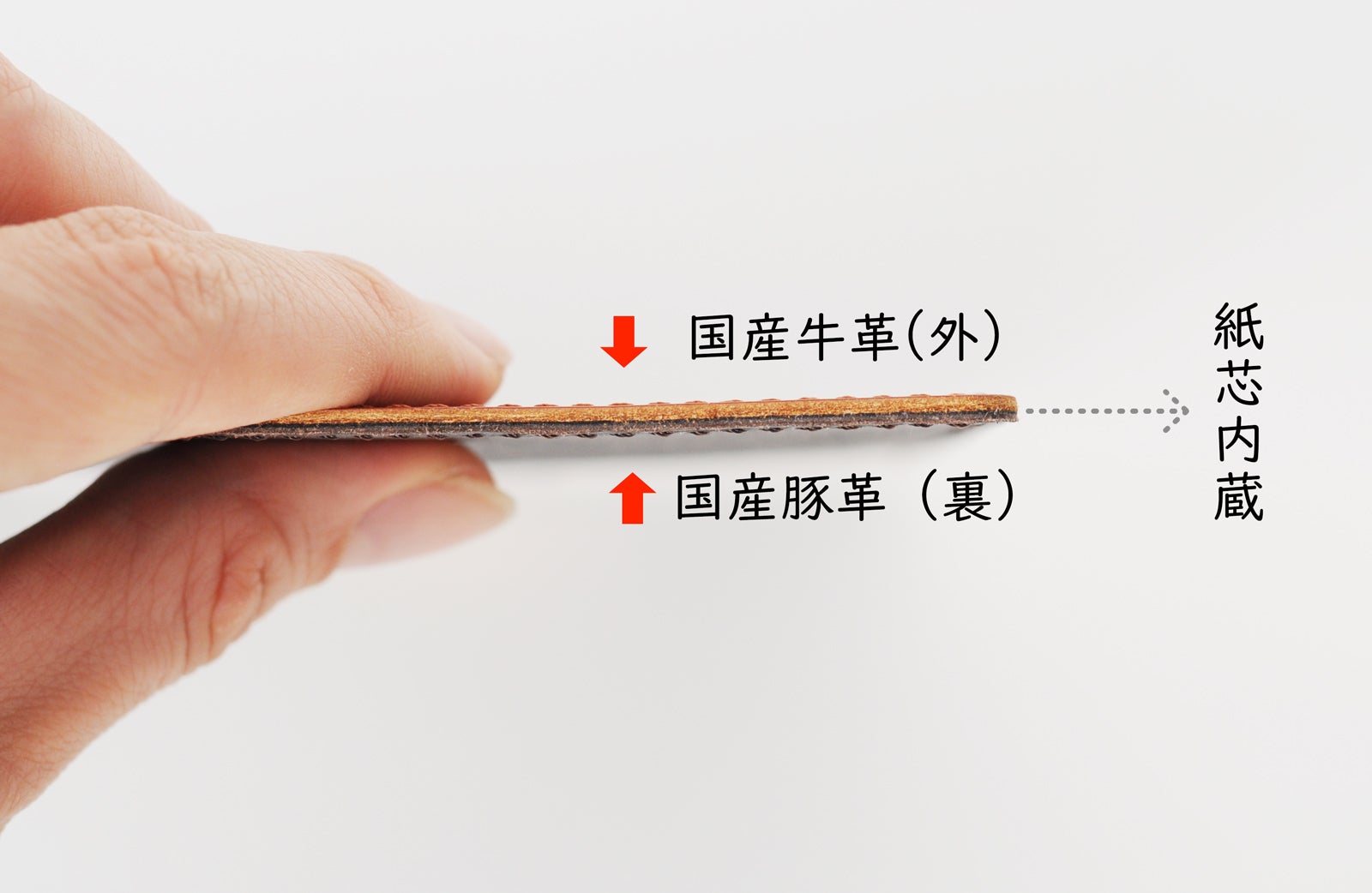 YOSHINAは強度アップの為、革同士の間に芯材を貼り合わせています。長く使用しても形が崩れにくく、最後までスムーズな書き心地を保てます。