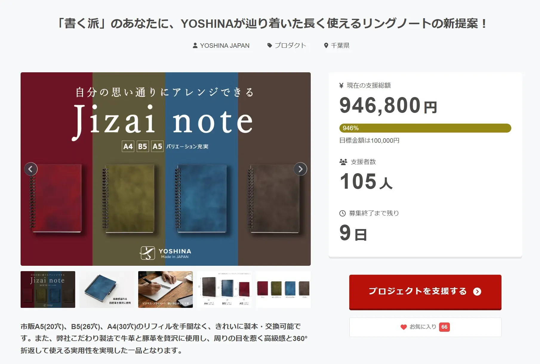 この度は、YOSHINA「自在ノート」のご支援を頂き、誠にありがとうございます。プロジェクトもいよいよ残り9日間で終了になります。お陰様で、当初予定していた目標を大幅に達成し、スタッフは喜びと共に、ものづくりのチャンスを頂けたことに大変感謝しております。