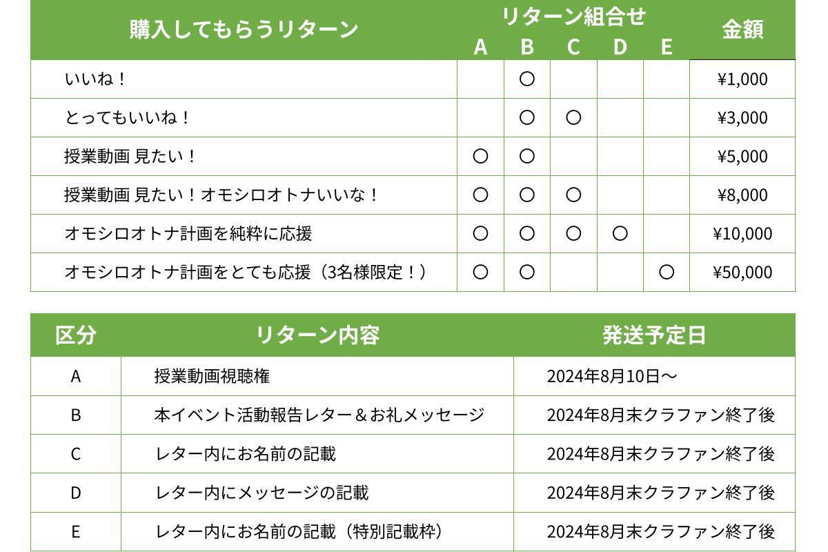 目標額を上回った場合は今後の【オモシロオトナ計画】の資金に充当させていただきます。
