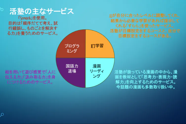 そのため、「やる気を出すための仕組み」に特化した、「アミューズメントとしての塾」の確立を目指したいと考えるようになりました。
