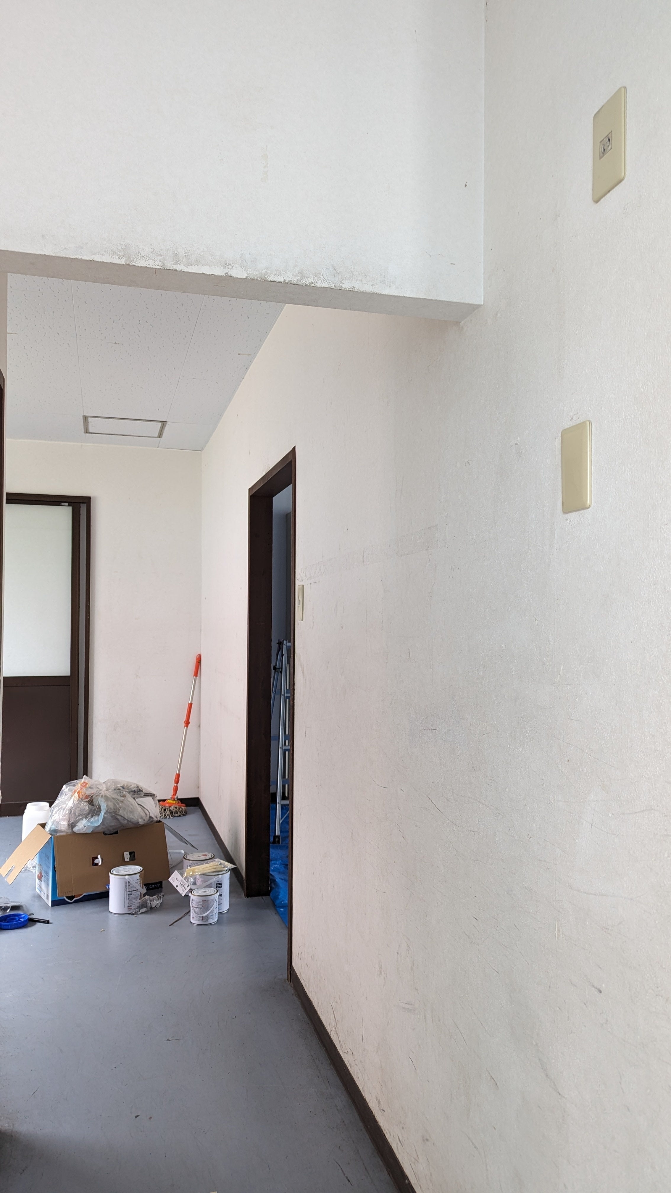 店舗の廊下の壁塗り