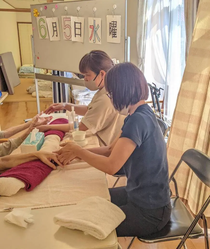 麗齢美容とは、ミドルシニア女性が習得したハンドマッサージやフットマッサージ等のエステ技術を用いて、コミュニケーションを図りながら高齢者に施術をすることです。