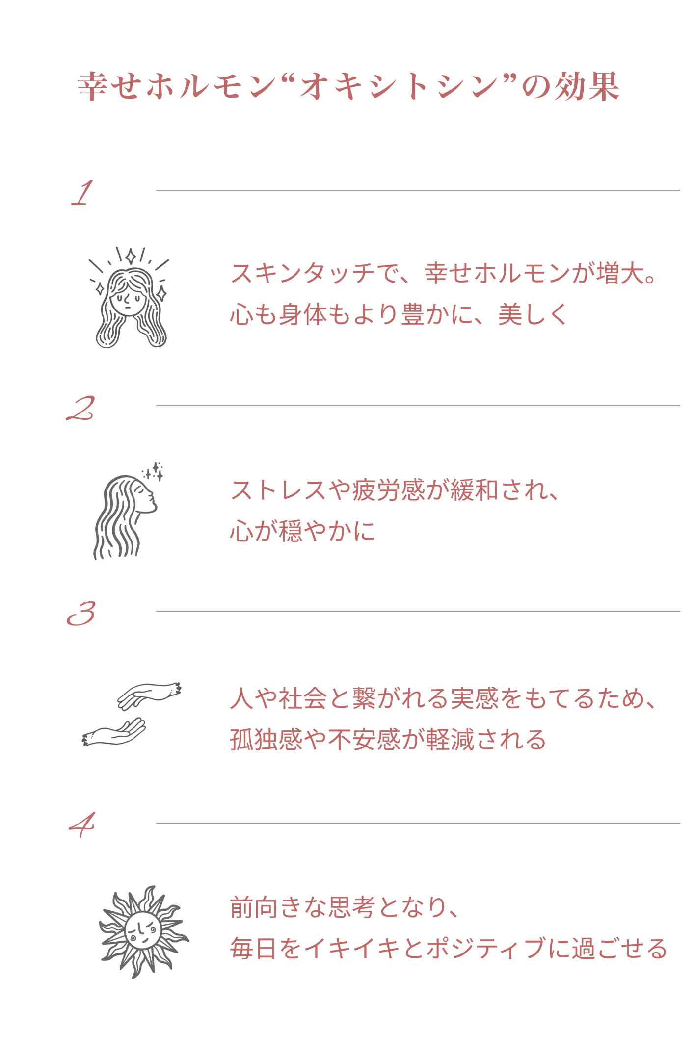 リラックス効果のある副交感神経が優位になり、幸せホルモンの“オキシトシン”が増加します。