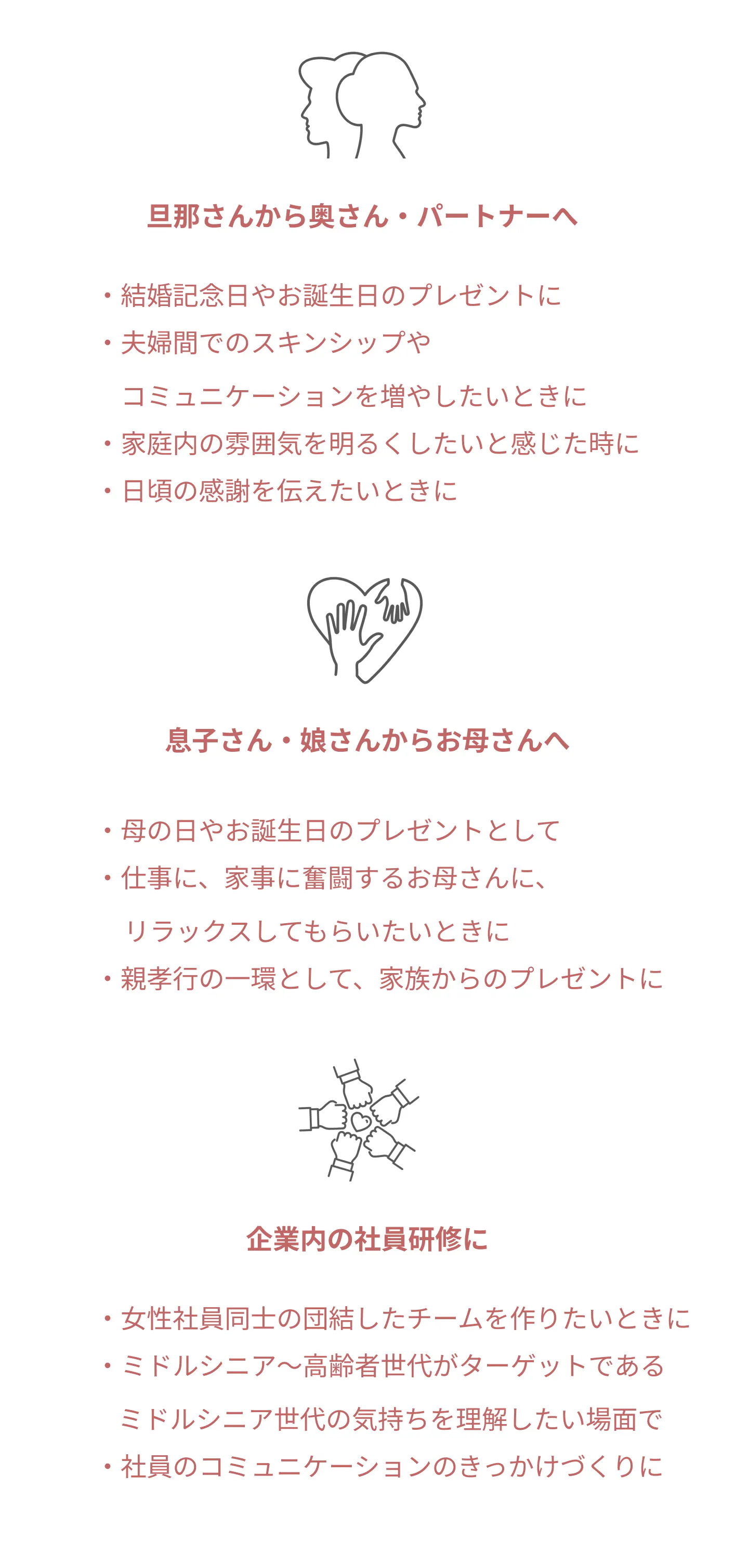 麗齢美容は、プレゼントとしてもご利用できるのはもちろんのこと、企業向けの研修の一環としても活用できます。
