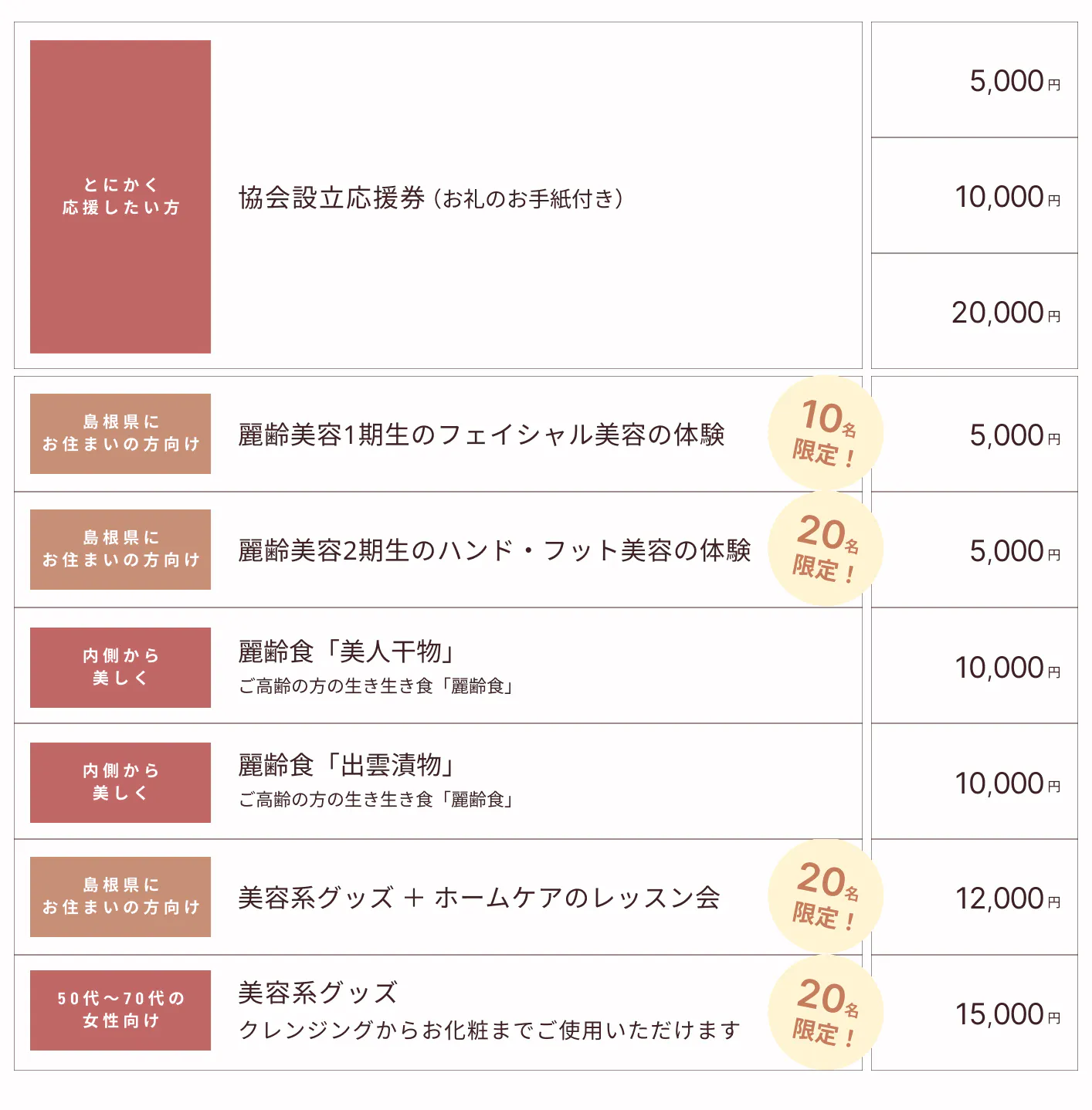 「美肌とご縁の国島根」だからこそ、用意できるリターン品を選定いたしました。