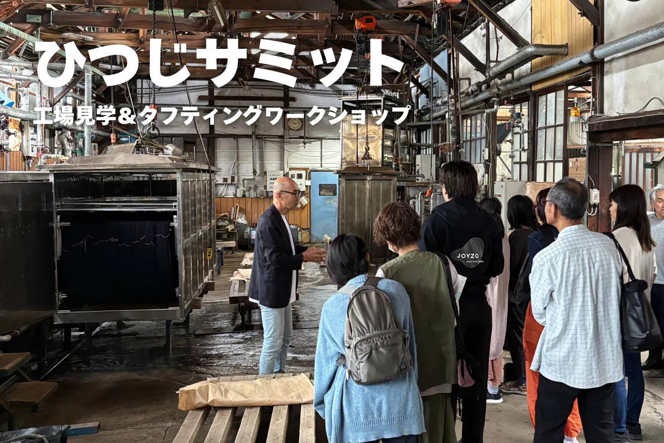小川染色は今年初めてひつじサミットに参加し、工場見学とタフティングワークショップを行いました。