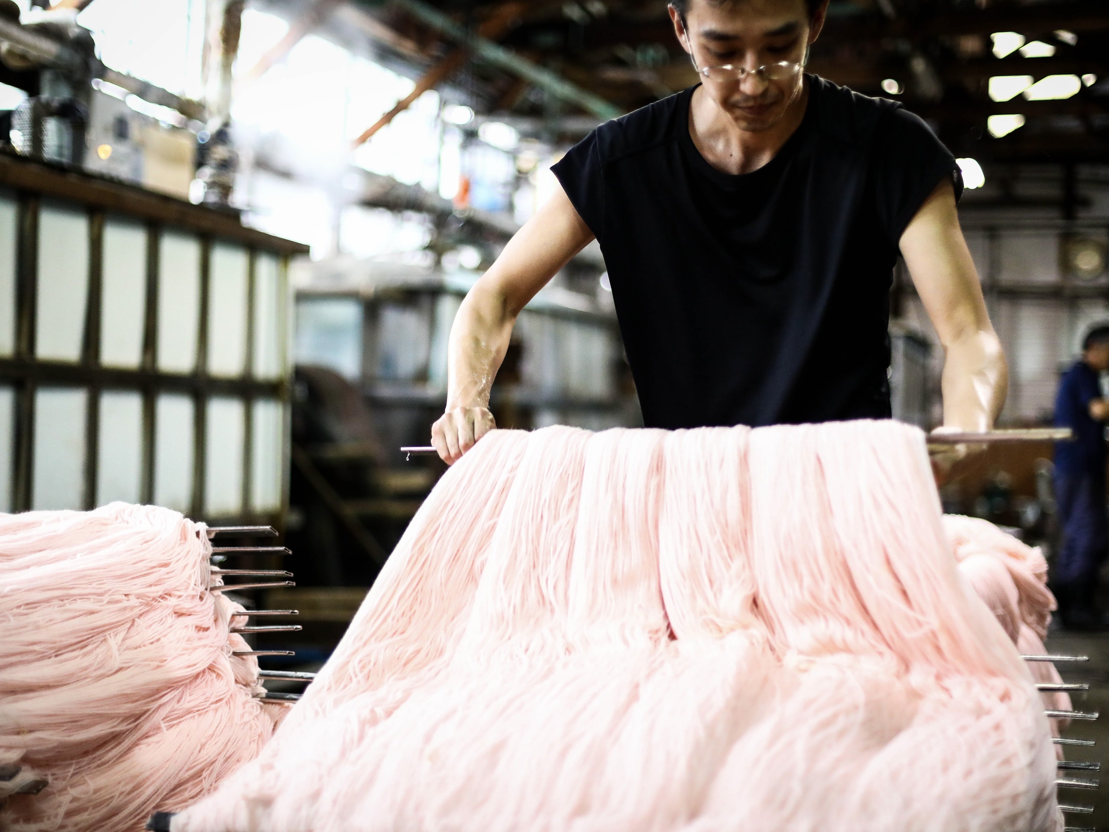 弊社は繊維産業が盛んな尾州地域の染色工場。手芸糸や服地、生活産業資材など、多様な繊維を染色しています。長年にわたり法人を対象に、お預かりした糸を指定の色に染め上げ出荷するという形で取引を行ってきました。